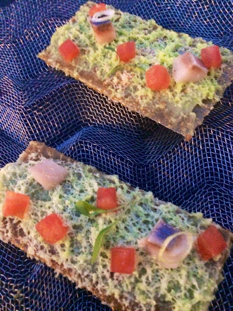 Las sardinas están deliciosas y son tan de estas tierras que según una gran amiga, son el más autóctono de los platos portugueses. Con permiso del bacalao, le digo yo. Sin necesidad de nacionalizar tan mediterráneo pescado, en Portugal es un plato imprescindible y su calidad es sobresaliente. Aquí se sirven sobre broa de milho, un pan de maíz que poco les aporta pero que es un delicioso guiño a la cocina popular, que siempre las ha servido sobre una rebanada de pan.