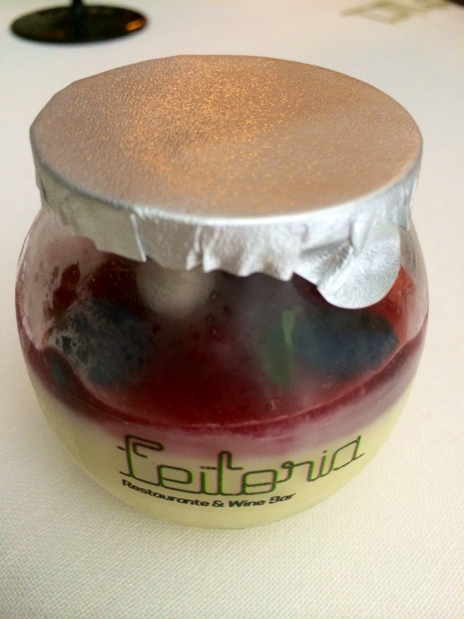 Después de la experiencia quesera, poco importa que el postre sea lo más flojo con los aperitivos o quizá sea que la capacidad de contentamiento no de para más, pero lo cierto es que las fresas (deliciosas, pequeñas y tiernas) con queso fresco, Amaretto, café, menta y chicharrones son sorprendentemente corrientes.