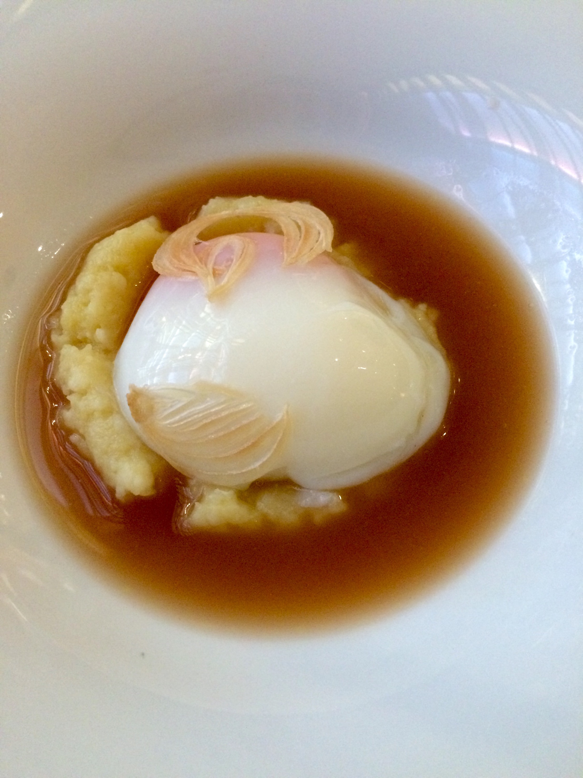 La mariscada con algas y agua de mar es un plato hermoso, elegante y con un sabor intenso, más de nadador que de gastrónomo, pero por eso entusiasma. La composición es perfecta aunque es demasiado parecida en el fondo y la forma, a la moluscada de Paco Roncero, así que, o lo idearon juntos, o creemos en la casualidad creativa o uno copió al otro…