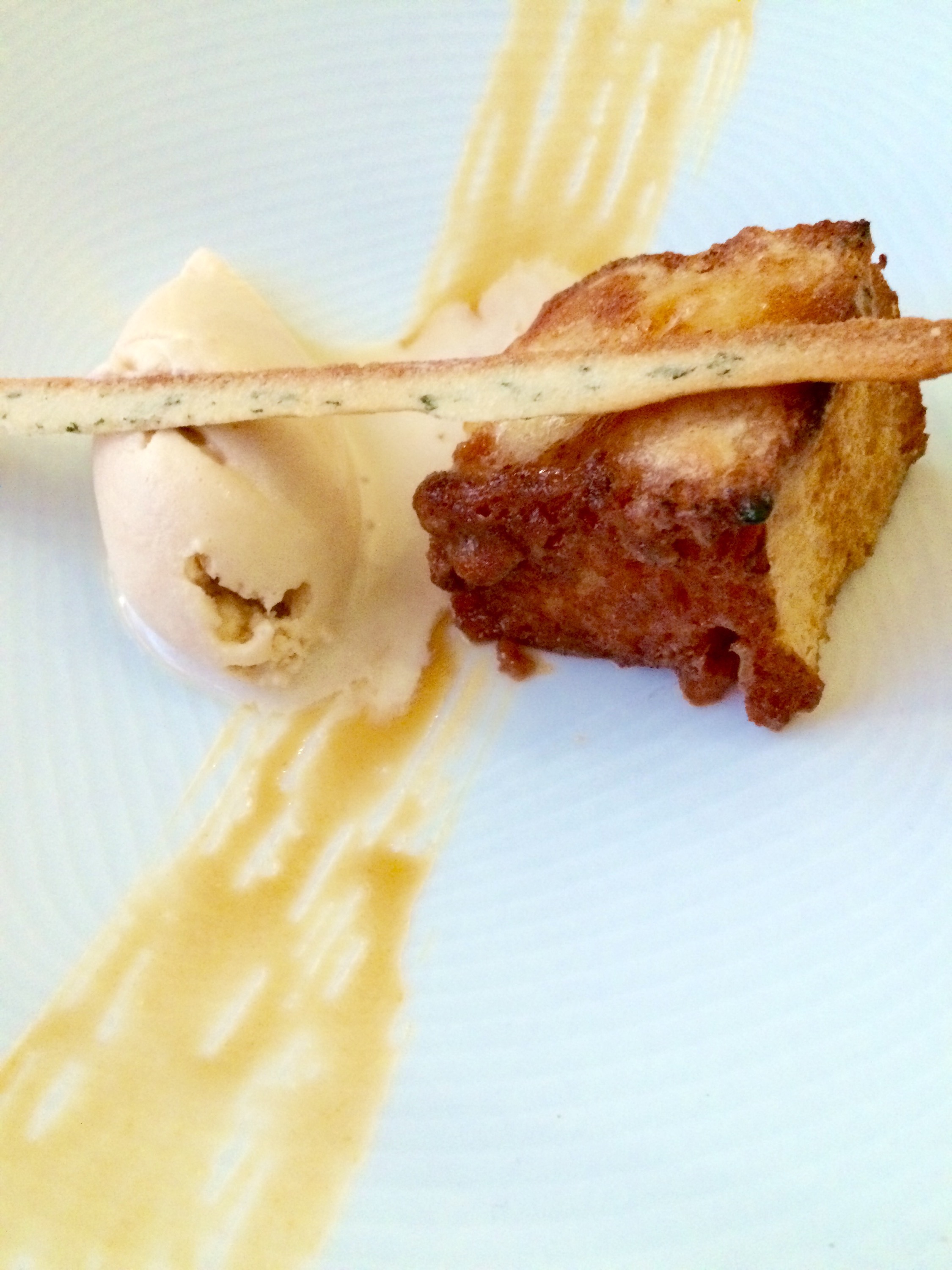 Las variaciones de mandarina refrescan maravillosamente después de sabores tan intensos y mezcla helado, tierras y una perfecta bola de pasta de mandarina, ejemplarmente ejecutada y que resulta deliciosa.