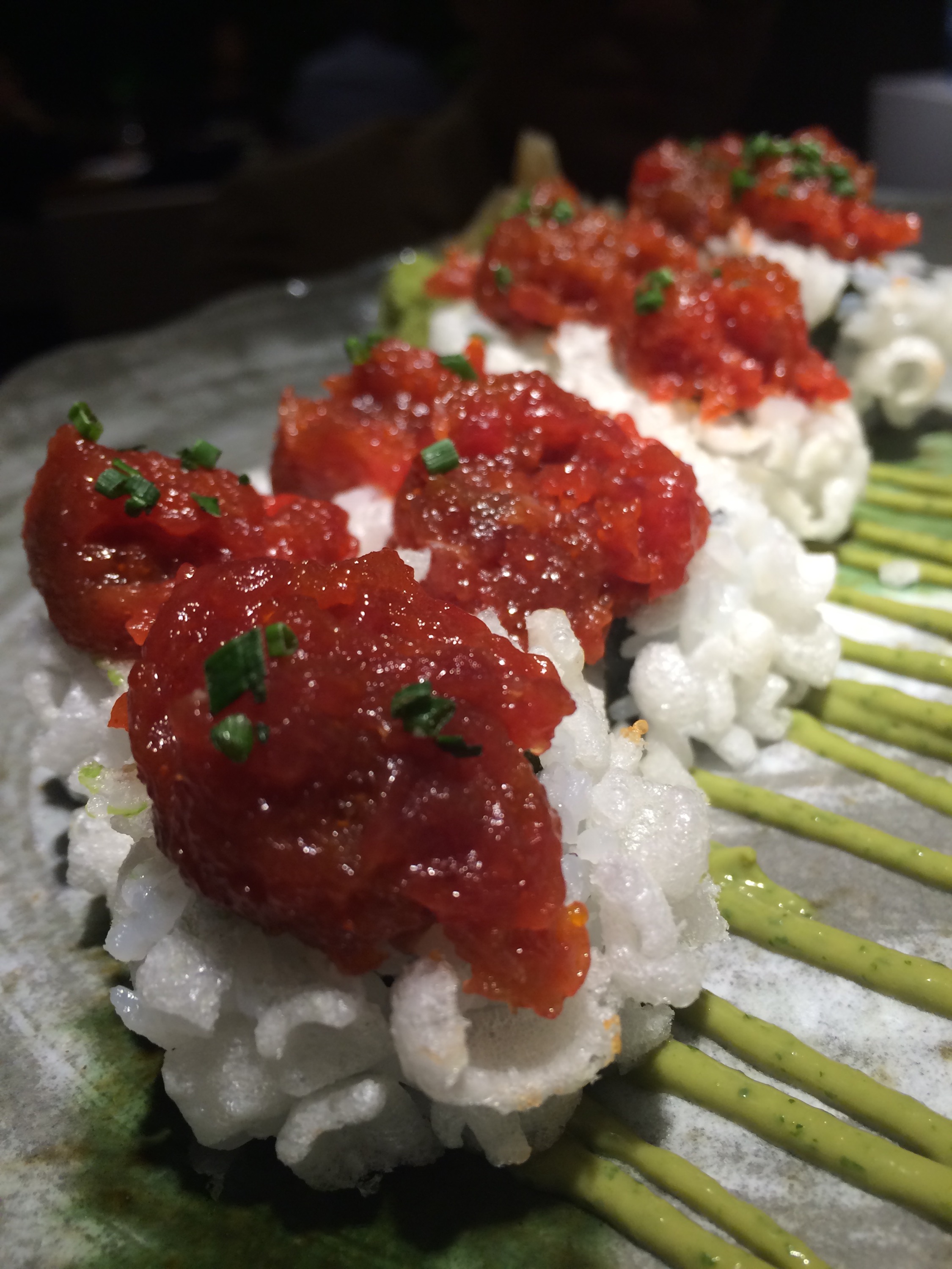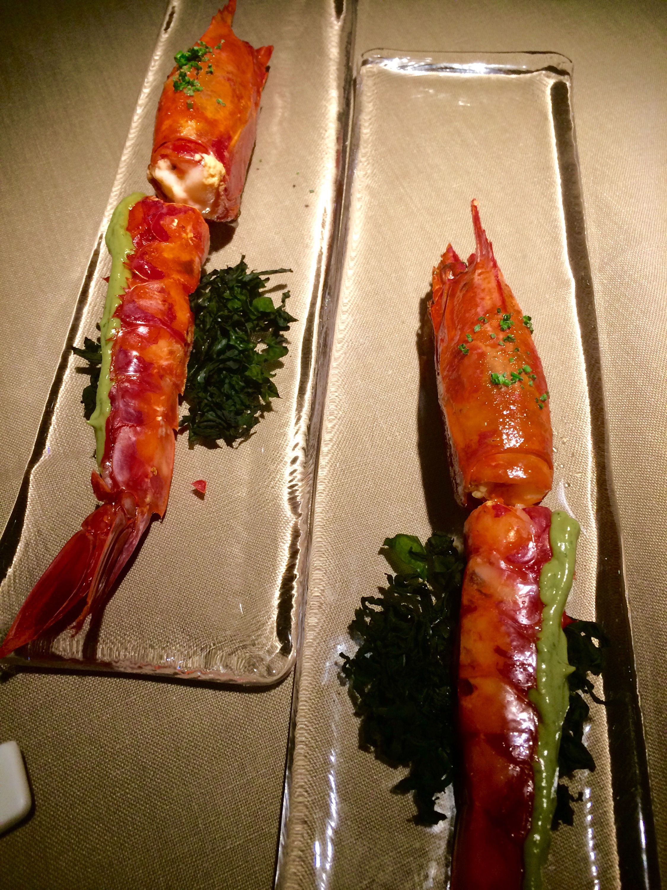 Empecé el almuerzo con cierto miedo porque la esferificaciones de aceituna son ya una receta demasiado banal, pero después pensé que eso será en España porque en Colombia son aún transgresión pura. Por cierto, que poco me gustó -como me pasó con otro que imitaba a Roncero y no lo decía- que dijeran que este plato es creación de Roncero cuando el mundo las debe al genio inmarcesible de Ferrán Adriá, ese visionario adelantado a su tiempo y maestro de este chef.