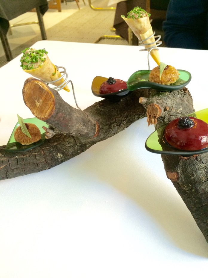Los aperitivos siguen siendo soberbios, arrebatadores los cucuruchos de camarones que se come todo (envoltorio comestible a base de obulato)
