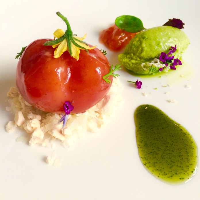 Alguien tan refinado como Ramón Freixa participa del culto al tomate y cada año le dedica un excelso plato que es un anuncio del verano. Recetas aparentemente sencillas pero siempre complejas, refrescantes, vistosas, a veces muy bellas y que, siendo sumamente respetuosas con el fruto, lo someten a muy diferentes expresiones.