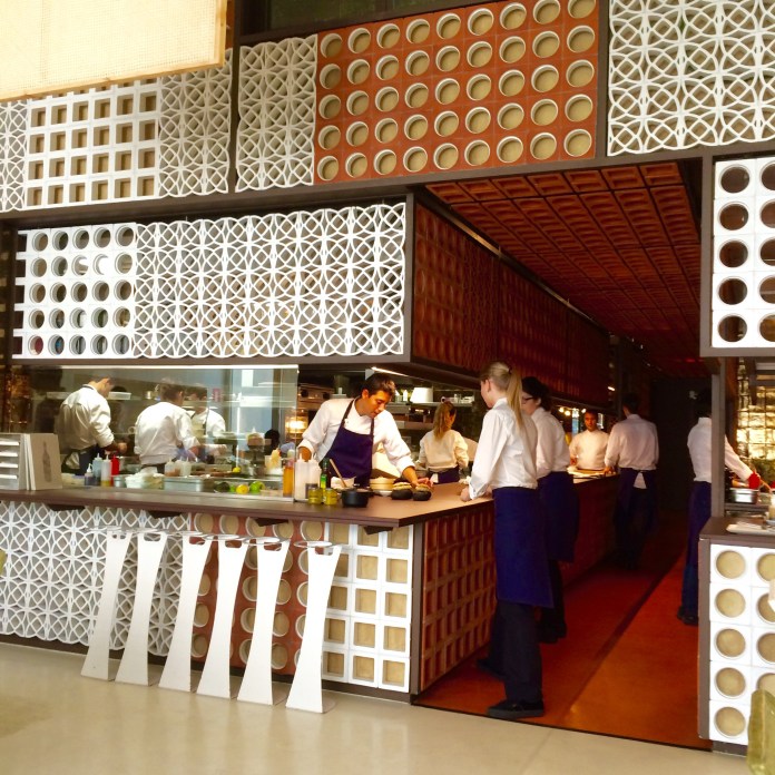 Ya se ha hablado mucho en este blog de la cocina de Freixa, pero menos de sus originales modos, porque compartiendo con la modernidad la multitud de platillos y preparaciones de los menús degustación, mantiene la estructura de siempre: primero, segundo y postre. La diferencia está en que aquí se separan las antiguas guarniciones convirtiéndolas en platos independientes que por sí solos podrían convertirse en protagonistas, y ello se verá cuando les hable de su otro rey del verano, el salmonete, y de la fideuá que lo engalana.