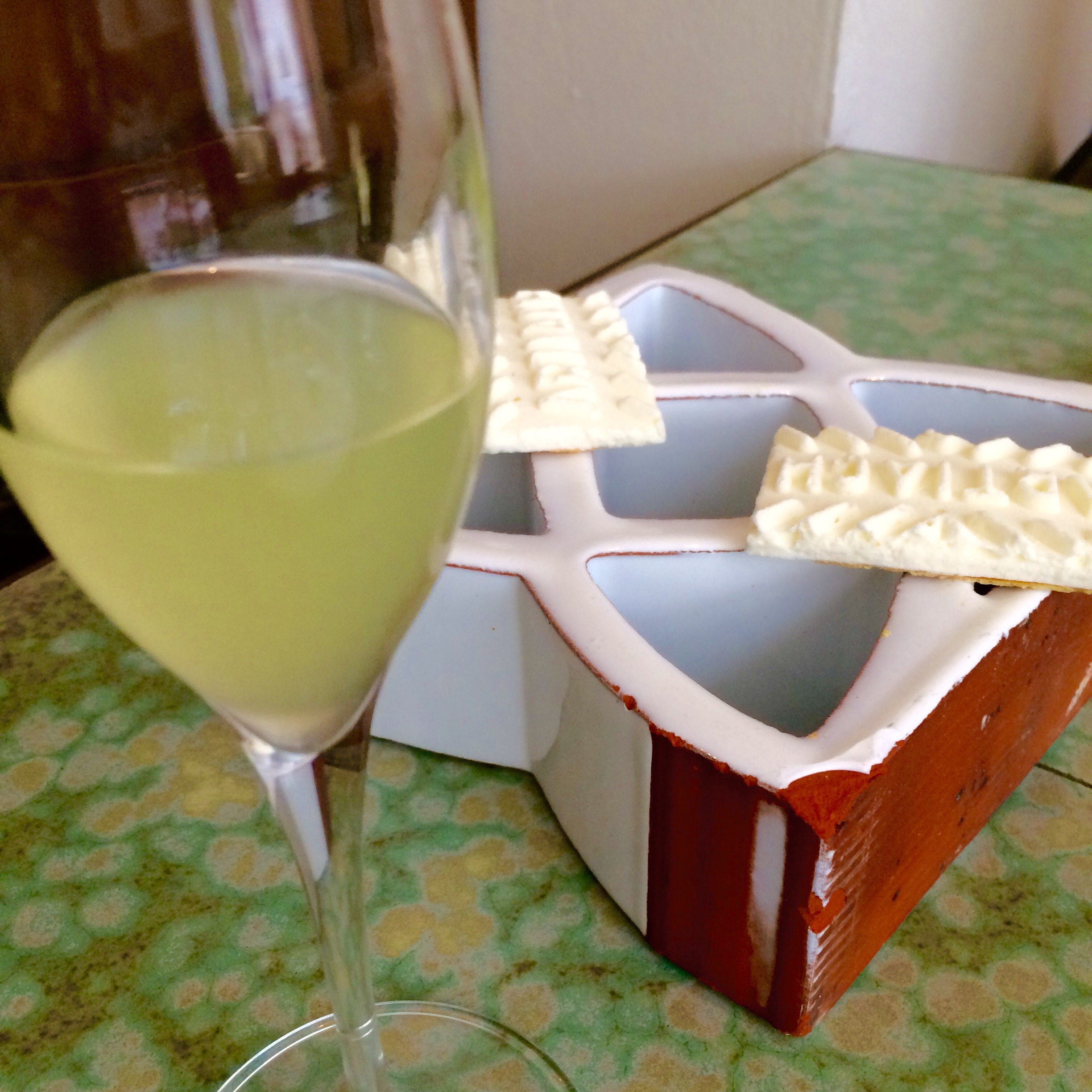 La cuajada de chocolate blanco y ruibarbo es otro dulce con personalidad propia y vocación arquitectónica, una de las cimas estéticas de la carta. Basta con ver la fotografía para saber lo que digo.