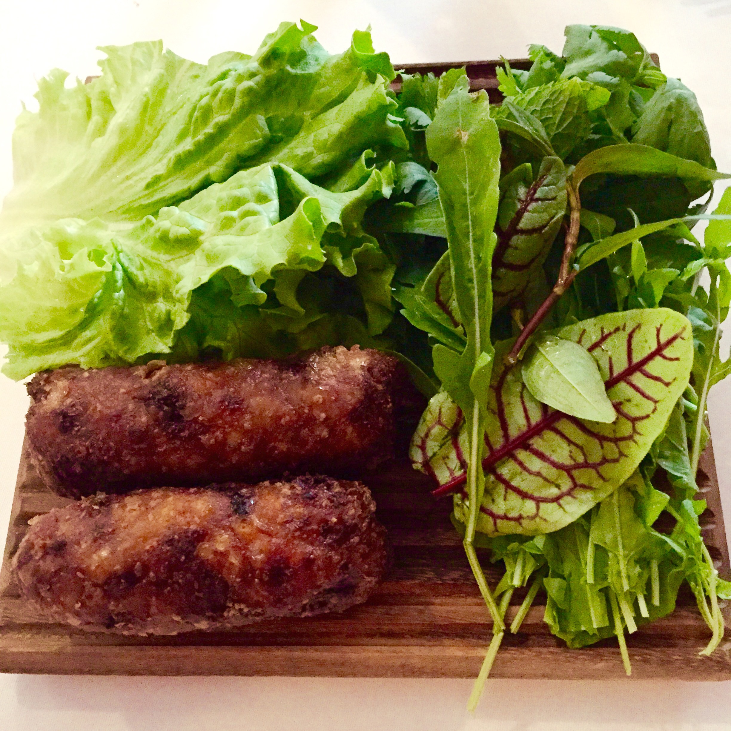El Nem número 5 se llama así, como los mambos de Pérez Prado, porque no lo pueden quitar de la carta o los clientes nos rebelaríamos, así que lo van transformando y lo numeran en sus diferentes preparaciones. Envuelto en papel vietnamita contiene, en esta versión, carne de ibérico, seta oreja de madera y bogavante. Extremadamente crujiente, perfecto de temperatura y con un relleno asombroso que se acompaña de multitud de hojas para envolverlo y suavizarlo: lechuga, albahaca, albahaca thai, cilantro, rúcula y rawraw.