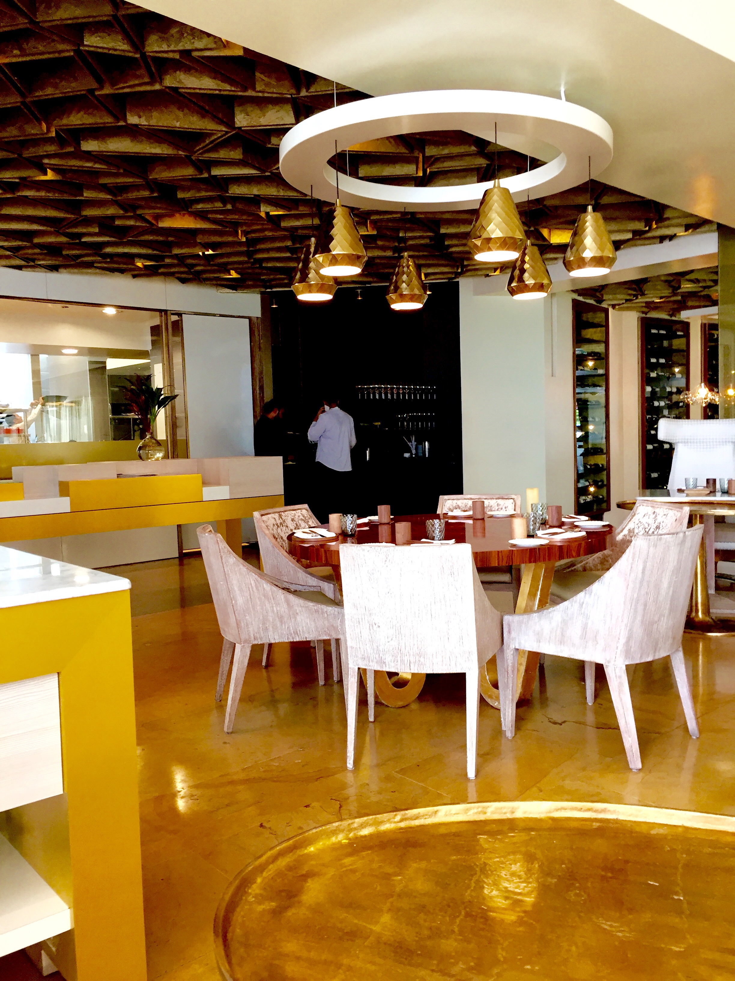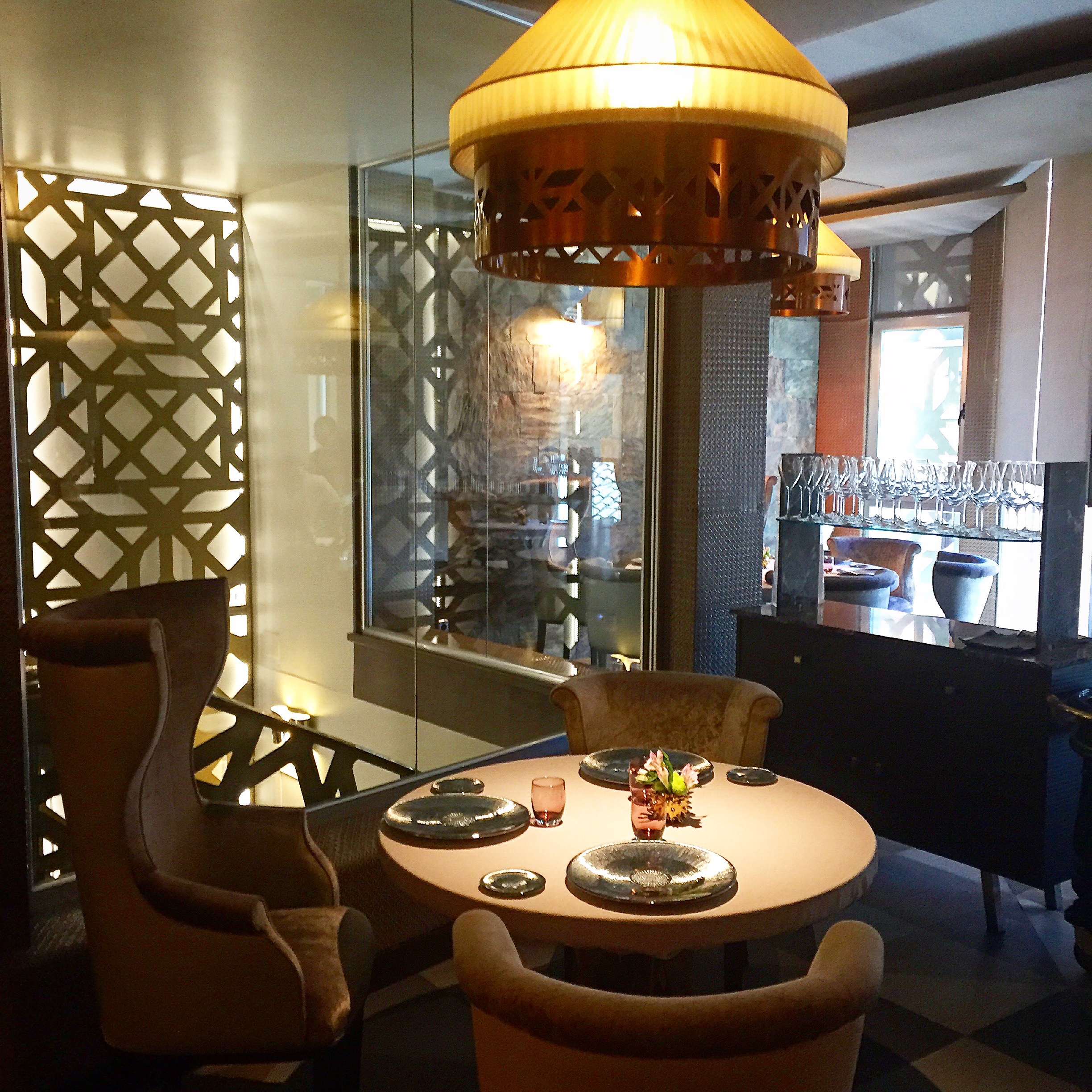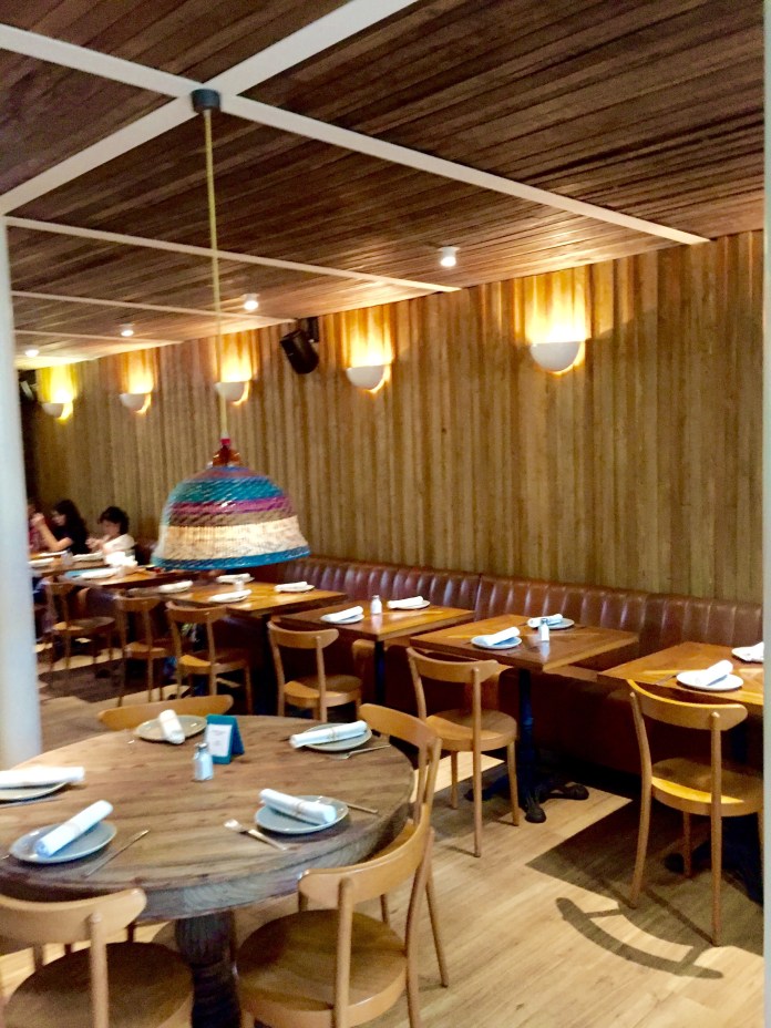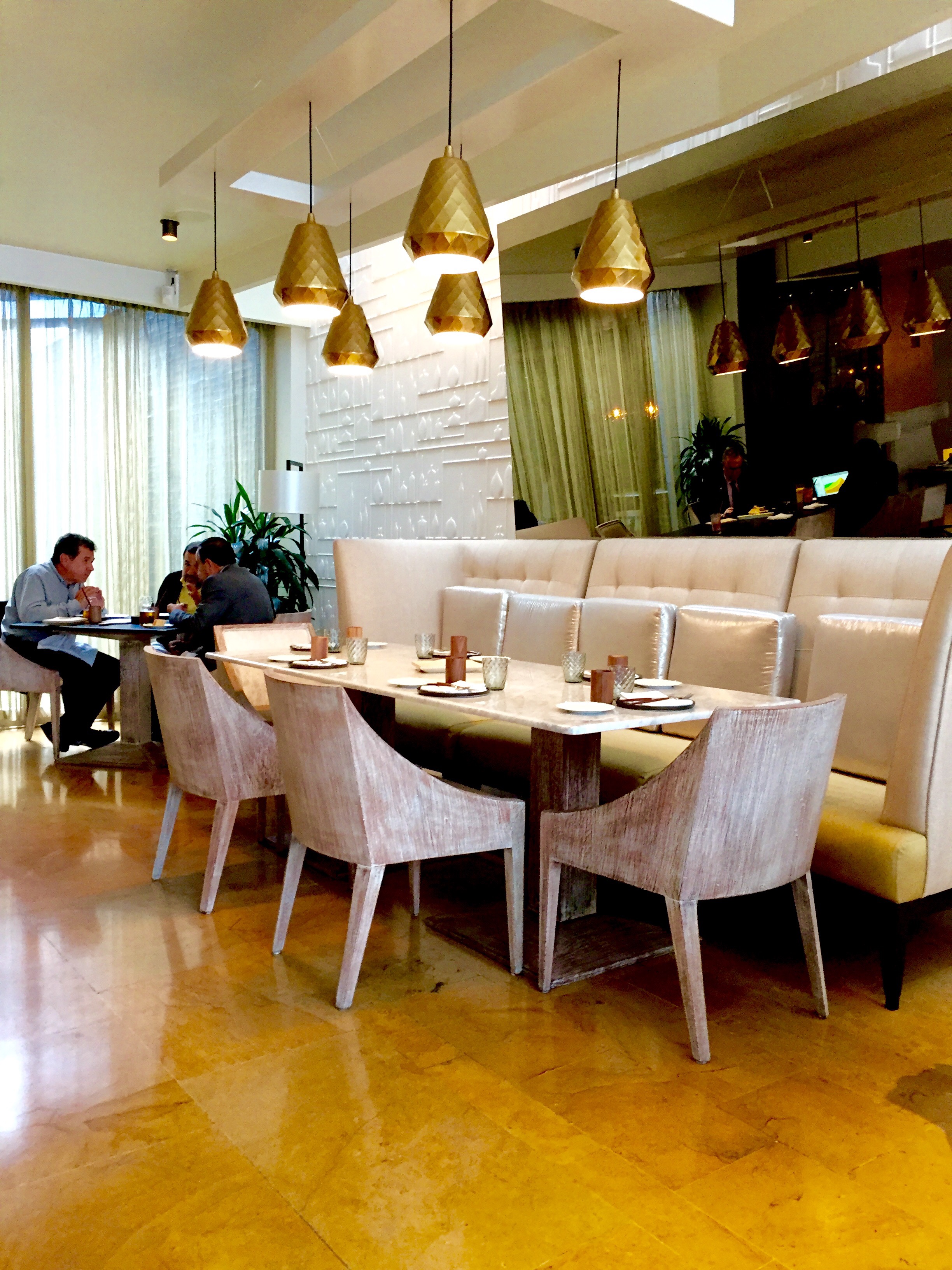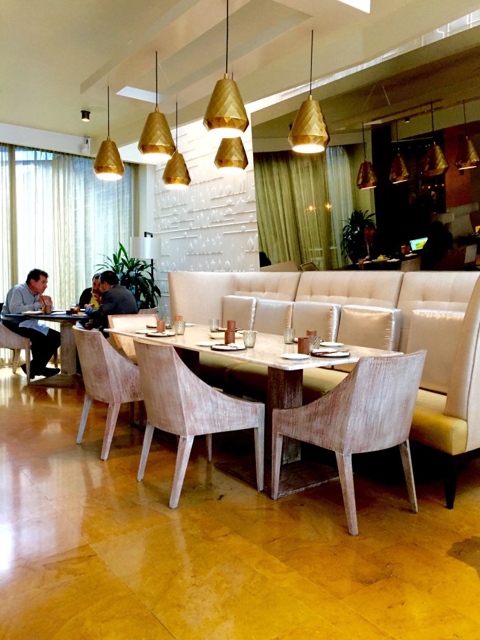 Está situado en un bonito hotel llamado BOG. Bonito, que yo les pueda contar, en sus zonas comunes, porque viendo el poco interés que ponen en captar clientes -claro, está de moda, por ahora…- opté por otro más convencional y de gente amable. El restaurante es elegante, moderno y luminoso.