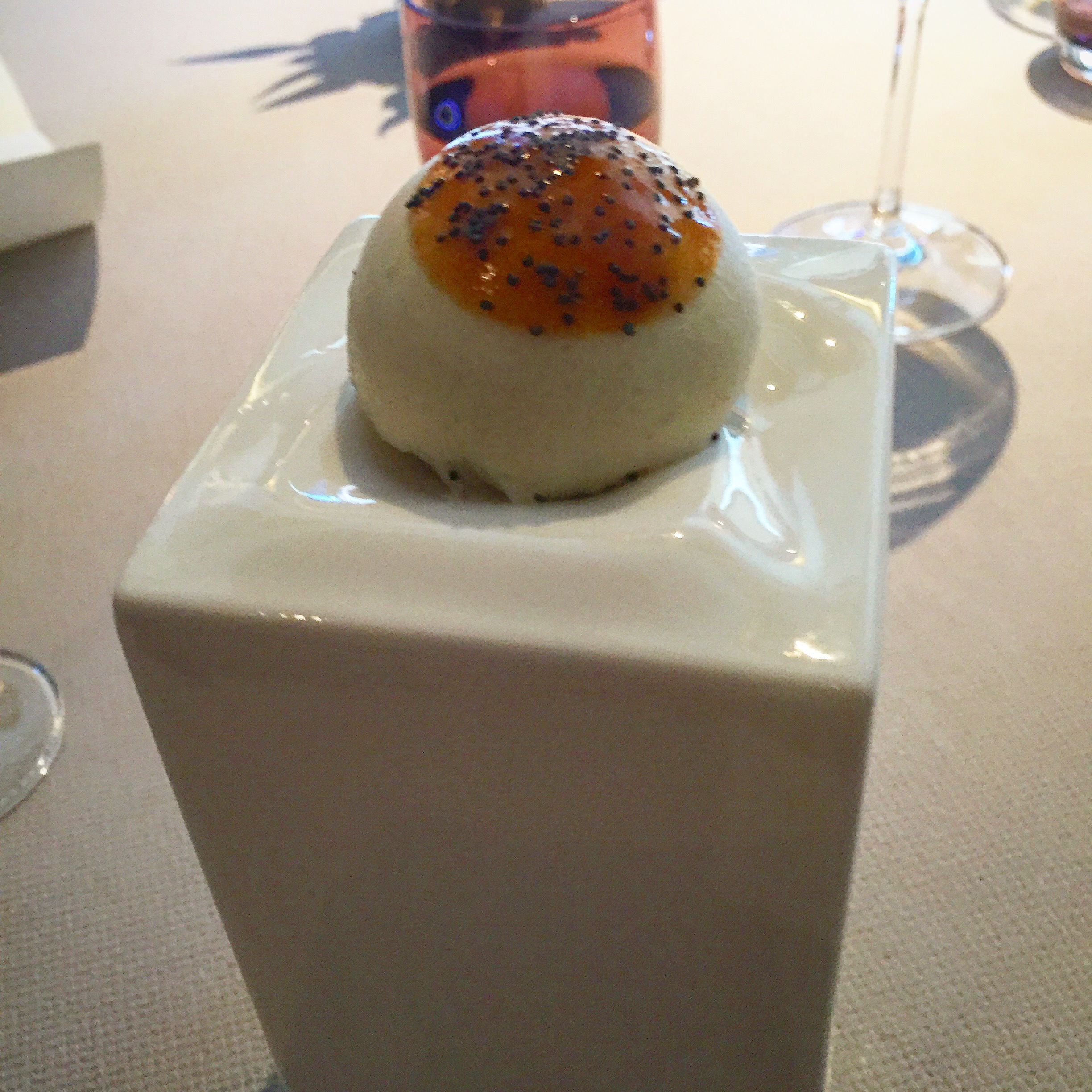 o a un llamado bocado aireado de polifenol con queso azul macerado en vino. La tartaleta, llena de sabores fuertes, es mucho más sensata que el nombre y mezcla texturas y sabores admirablemente, si bien la presencia de cualquier componente del vino está presente como en todo el resto de los aperitivos.