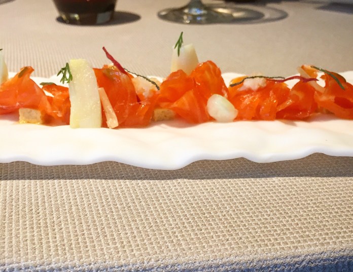 Sin embargo, la cocina ha mejorado sumamente. Ahora es la de María Marte y no la de Diego Guerrero y ella, con sus saberes latinoamericanos, ha optado por una fusión de lo mediterráneo con lo mejor de Latinoamérica. Una elección inteligente porque es lo que mejor conoce y porque era lo único que faltaba entre los grandes de Madrid visto que Freixa y Arola son decididamente catalanes, Roncero internacionalista, Muñoz oriental y Sandoval castellanomadrileño