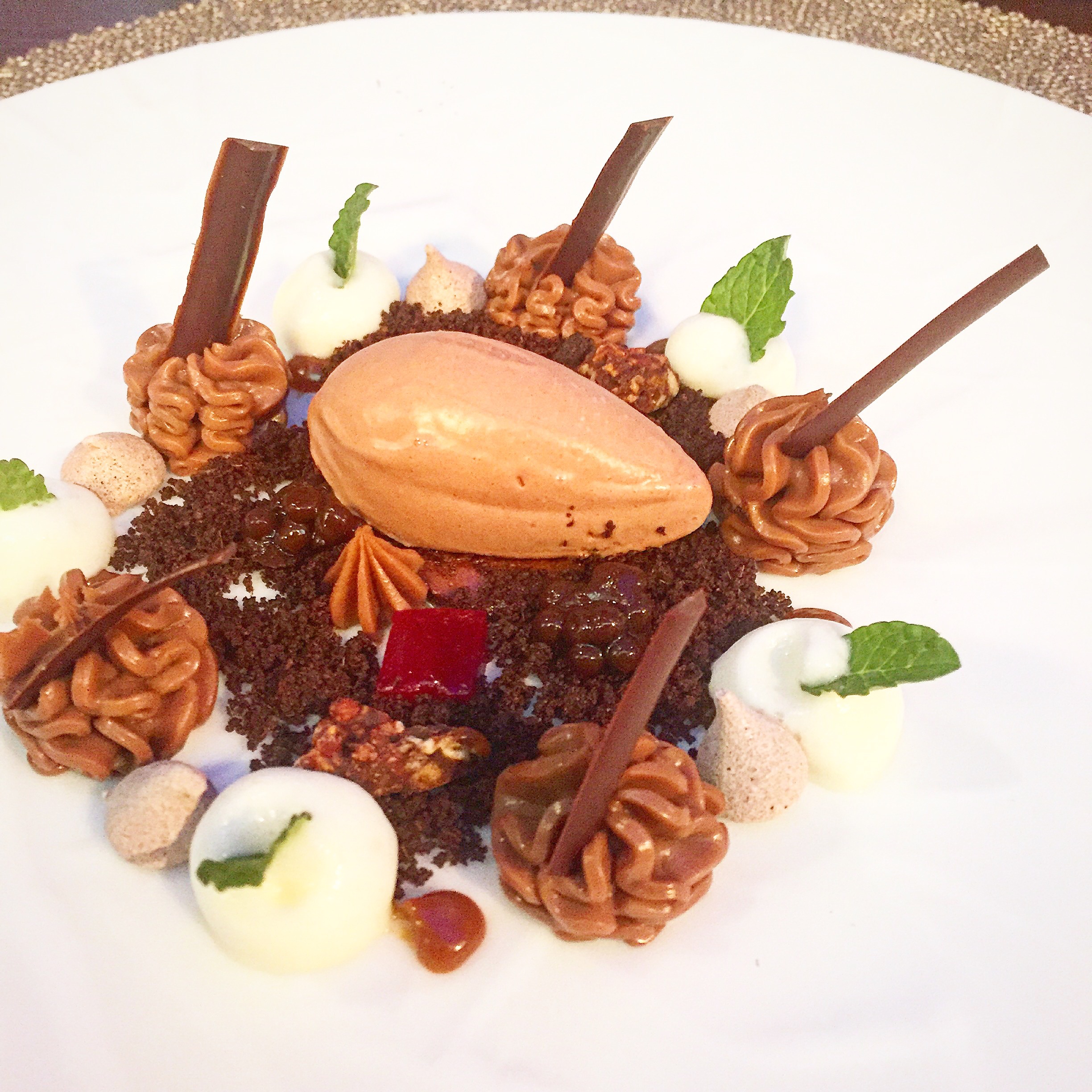 Las texturas de chocolate es un plato que nunca falla porque este maravilloso diamante negro que es el cacao admite muchas combinaciones y presentaciones, yendo de lo más suave a lo más denso, del amargor del negro al dulzor del blanco y presentándose lo mismo crujiente, que espumoso, que helado, que gelatinoso. Mario lo borda en un gran postre que equilibra a la perfección todos sus componentes extrayendo todo lo posible de esa mágica pepita que por algo fue moneda en míticas civilizaciones.