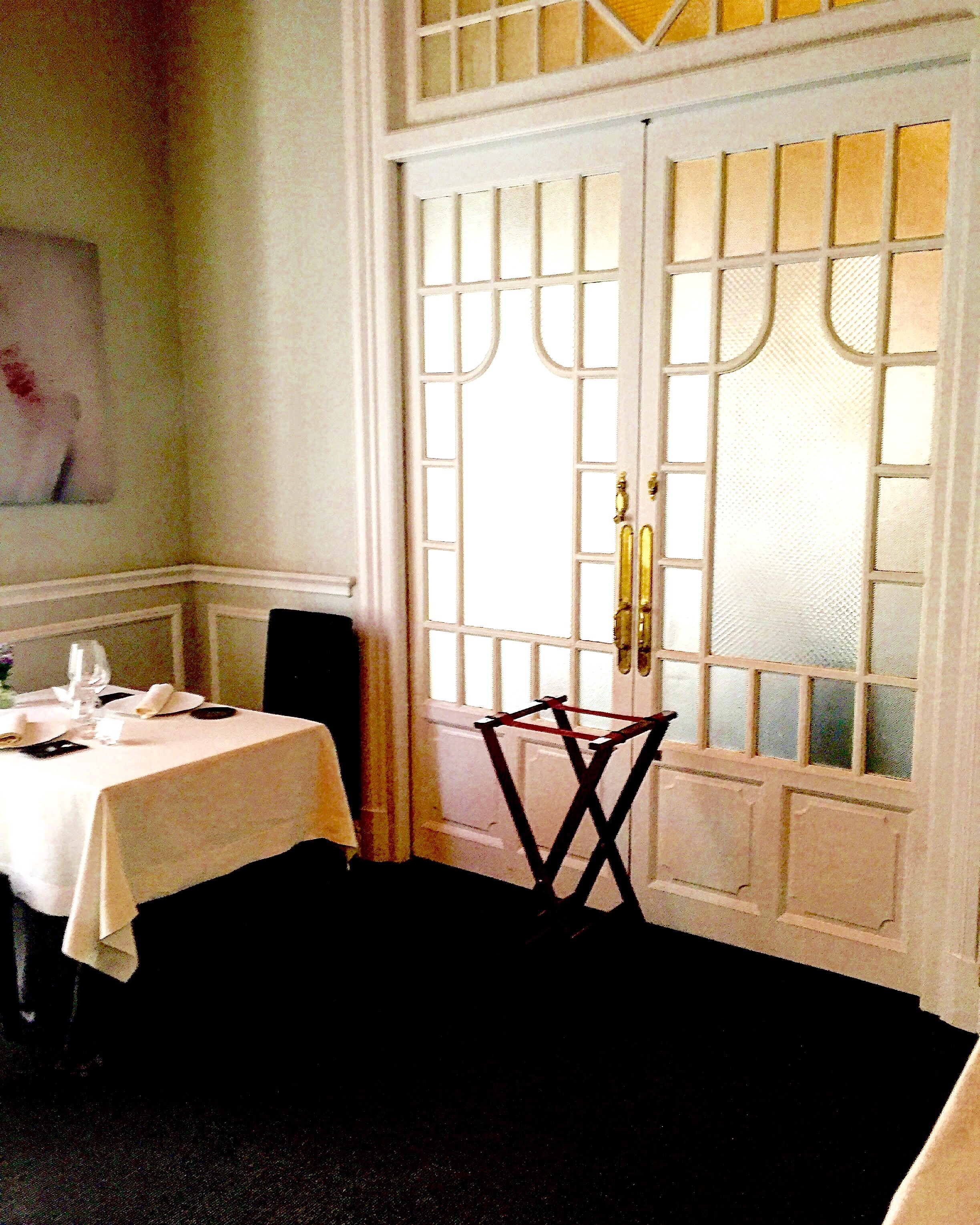 El restaurante sigue siendo algo tristón a pesar -o quizá por eso- de su elegancia de grises y blancos y de estar decorado por el siempre refinado Nacho Vicens. Será que la casa en que se asienta, tan bella como decadente, tan recargada como una anciana llena de afeites, le contagia su decadentismo fin de siecle y ese aire cansado y marchito del Madrid decimonónico.
