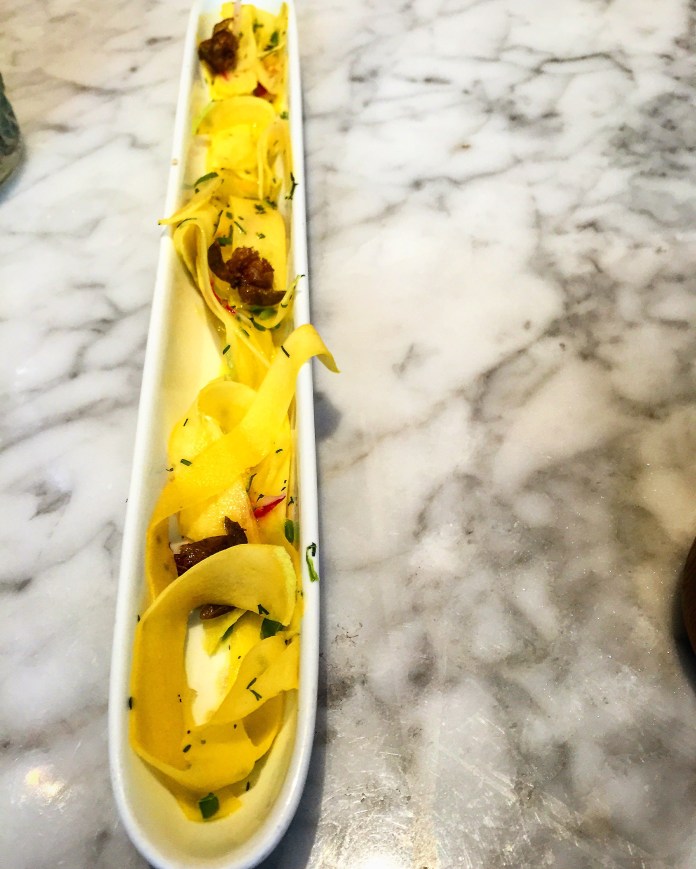 Hace ahora dos años escribí sobre la nueva etapa del Club Allard y fui ciertamente crítico. Eran los principios al frente de sus cocinas de María Marte, una cocinera autodidacta y maestra de la autosuperación; un periodo en el que parecían querer olvidar la magnífica huella de Diego Guerrero. Me preguntaba entonces y me pregunto ahora, si los platos son del autor -el cocinero- o del propietario -el restaurante-  y es que María seguía en exceso dependiente de la cocina de su exjefe ejecutándola con menos pericia. Han pasado dos años en los que ha mantenido las dos estrellas, ha seguido contando con el fervor del público y en los que yo no lo había vuelto a pisar, así que ya era hora de que volviera para verificar mi acierto o reconocer su evolución.