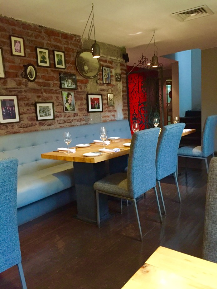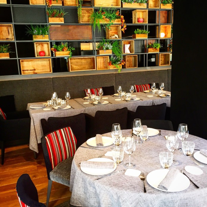 Por eso, estoy tan contento de poder contarles el traslado de LaKasa a un nuevo local que parece una caja de cristal que absorbe toda la luz y la derrama por doquier. Aunque siguen con la propensión a los negros y grises del antiguo local, aquí se atemperan con toques de rojo y multitud de verdes de falsas plantas trepadoras. Tiene un cierto aire de invernadero de universidad, serio y sobrio, para que de este modo los placeres de la vista no distraigan demasiado los del gusto. Esta ya es en sí una gran noticia, porque solo la decoración me disgustaba de LaKasa, un tipo de restaurante tan necesario en Madrid que bautizó esta saga llamada Más bistrós y menos tascas.