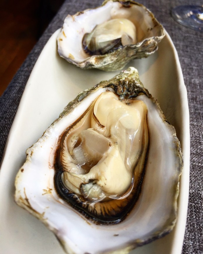 al igual que seguir con la ostra en consomé de corzo y amontillado, una receta simple y refinada que despoja a la ostra, para los que la detestamos, de su exagerada carnalidad y de parte de su agreste sabor que, no obstante, mantiene casi intacto para los que las adoran. Estas son de Guillardeau, tan sofisticadas que llevan grabada en la concha la inicial del productor.