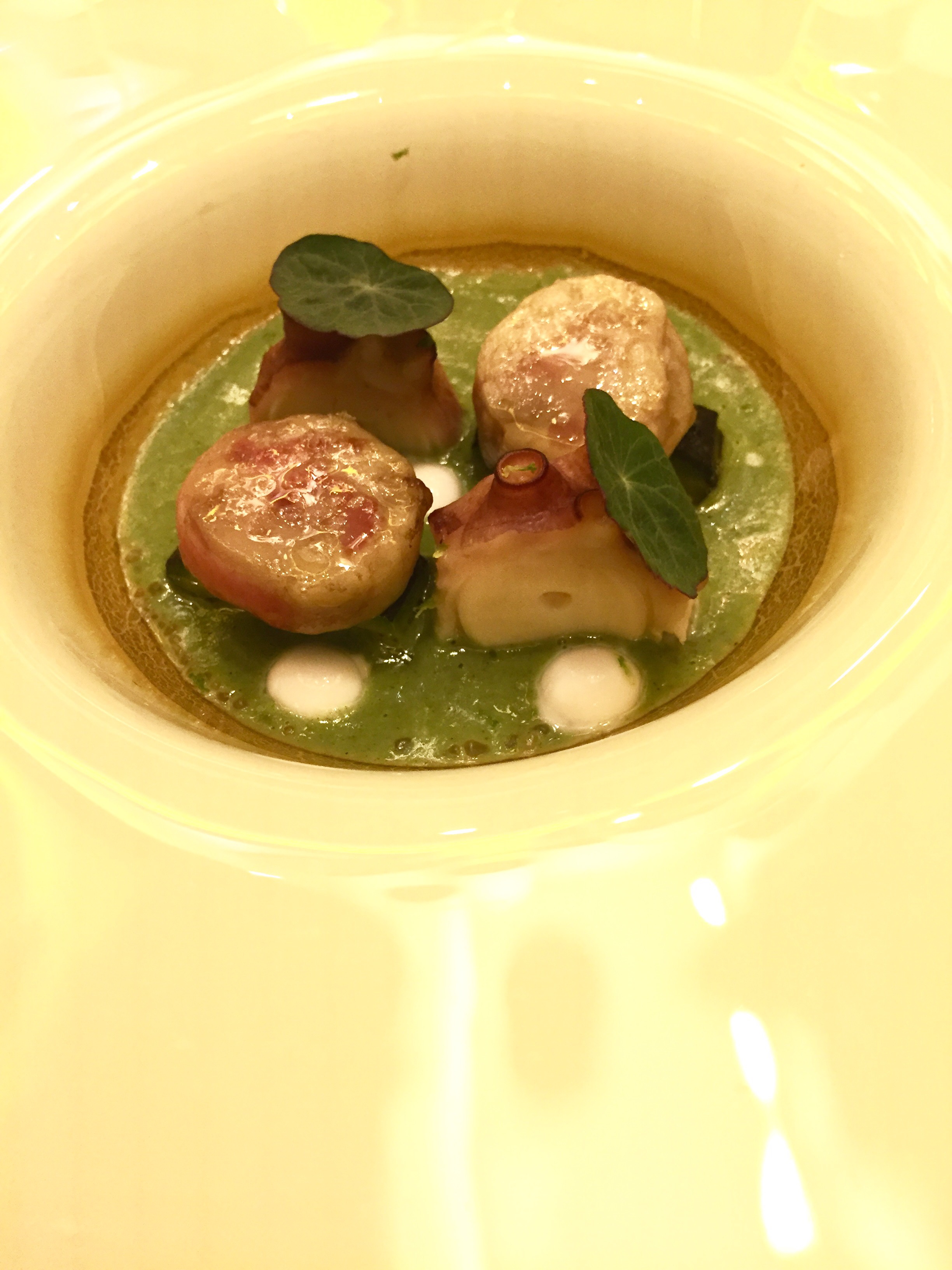 Uno de los grandes platos de Diego es el pulpo a la llama, mexicano también donde los haya por causa de esa delicia llamada tomatillo y que envuelve el pulpo, escondido a su vez en la espuma resultante de la propia cocción.