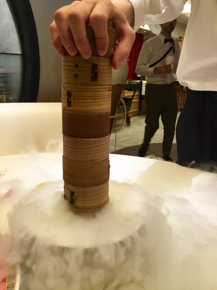 -Char Siu Bao XO: mollete al vapor remojado en leche de oveja y su piel con maíz tostado. Dabiz Muñoz debería tener prohibido sacar de sus cartas sus archifamosos molletes chinos (o pan bao/mochi andaluz) porque sus rellenos únicos, la textura suave de su cobertura y los sabores profundos y diferentes son siempre una delicia difícil de explicar. Todo este recital de sabores  y saberes para enaltecer la más banal cocina china, como si fuera una broma, vale por sí solo todo un curso de filosofía culinaria.