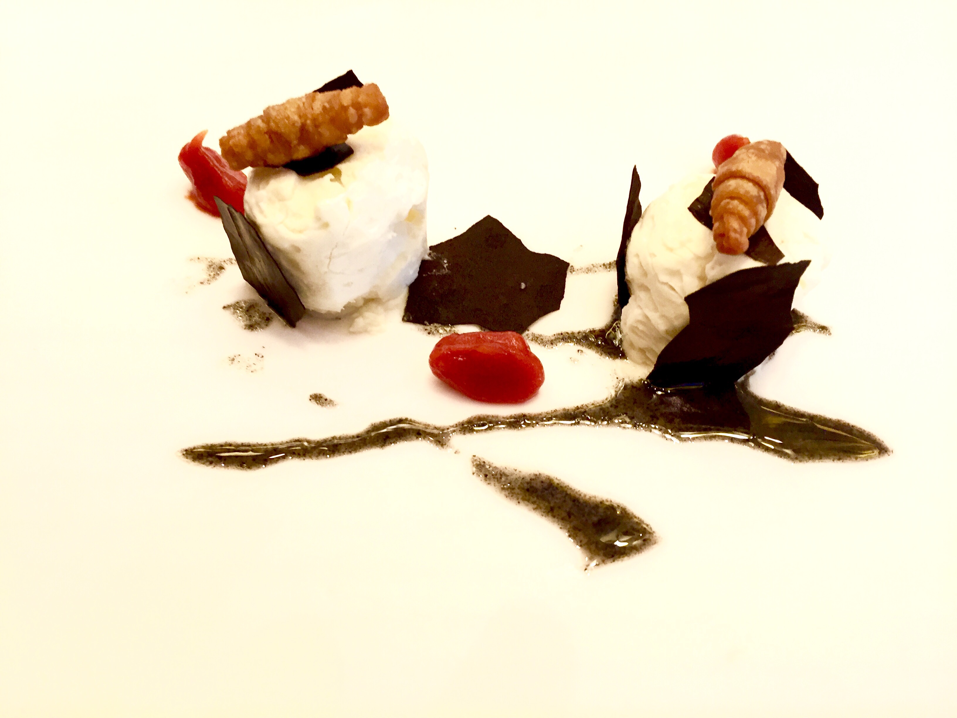 Los postres son también muy buenos. Las texturas de mango se enriquecen con fruta de la pasión y coco y para rematar el conjunto y dar un toque crocante a las ternuras de helados y pastelitos se usa el sésamo negro quemado en forma de crujiente.