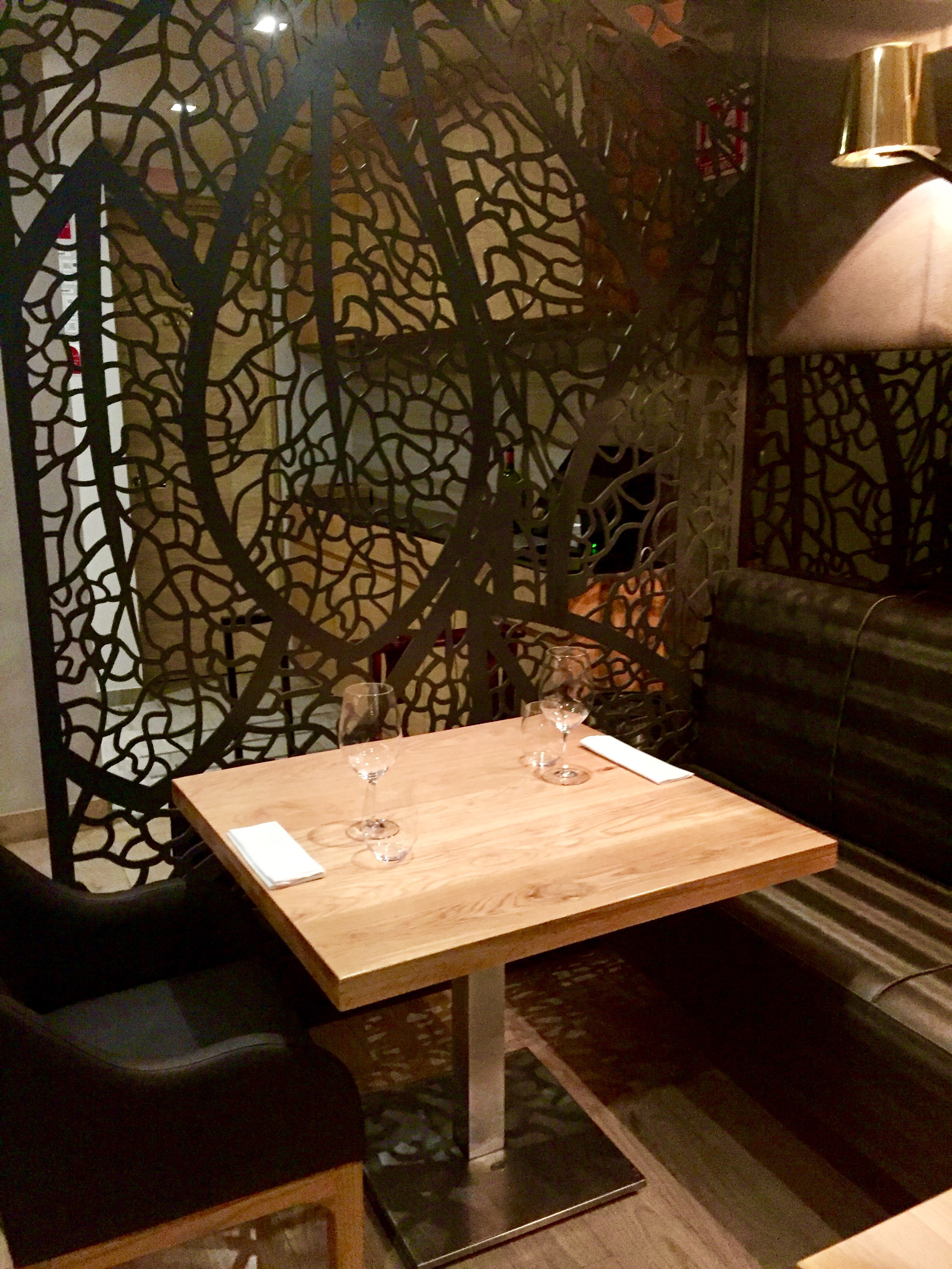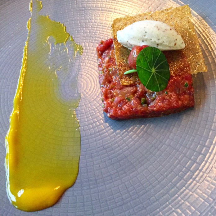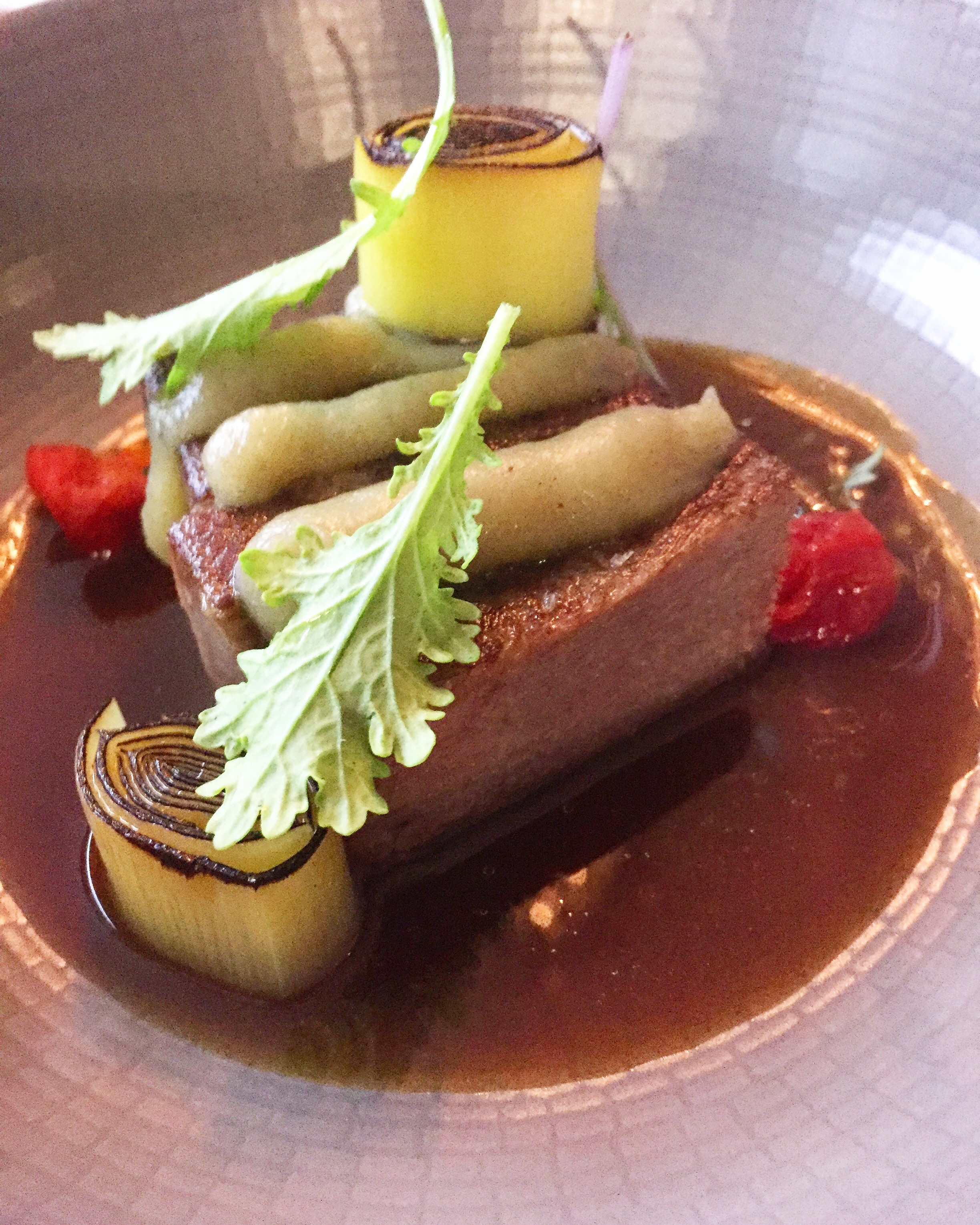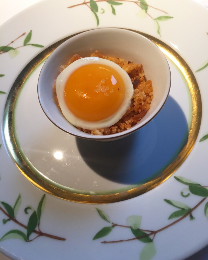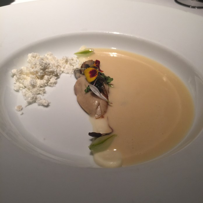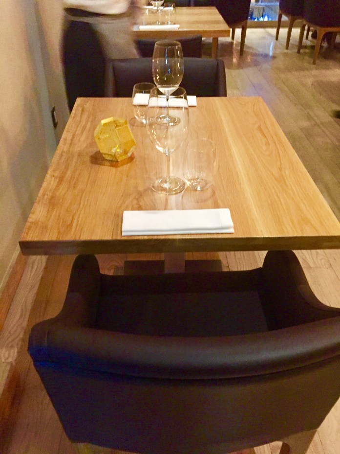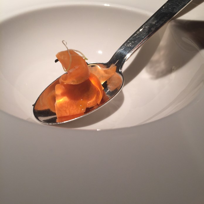 También los postres tienen gran nivel. Las esferas de chocolate con mole tienen un sabor fuerte que casi deja sin aliento, aún más que el estallido que producen en la boca. La espuma de oloroso es como un zabaglione esponjoso en el que el polvo de bronce embellece enormemente el plato.