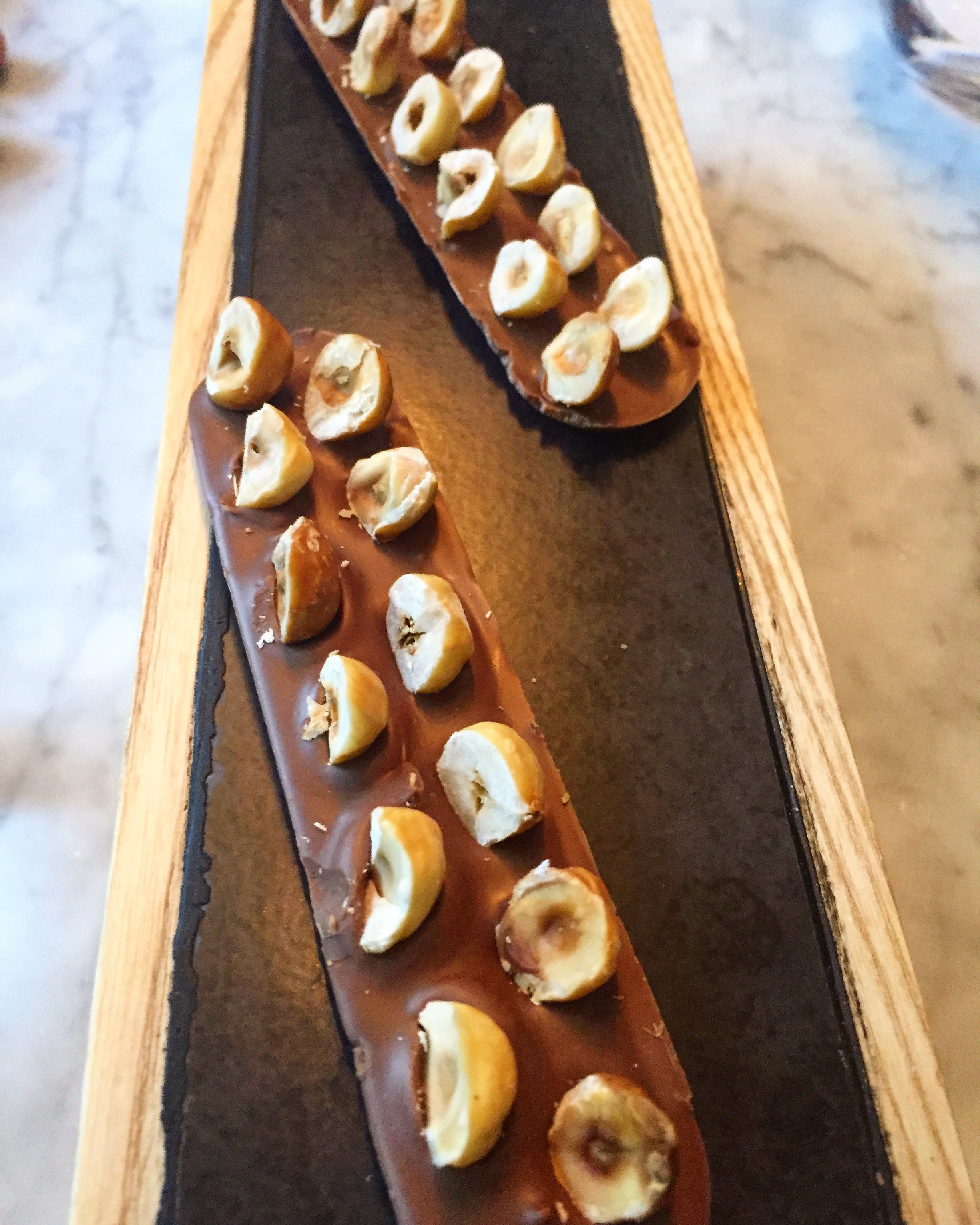 en Biko son todos maestros chocolateros. El praliné de chocolate con avellana, café y cacao es un postre tan clásico como maravilloso que navega sobre un espejo de chocolate, denso, brillante y semiamargo, que por sí solo valdría una medalla. A pesar de sus nombres no hay que engañarse. Lo que prima es el cacao aunque se perfume con esas otras cosas. Cacao intenso y aromático, una sobredosis de chocolate que entra por casi todos los sentidos. Para quien tanto sea poco (o mucho) un buen helado de avellana remata el postre.