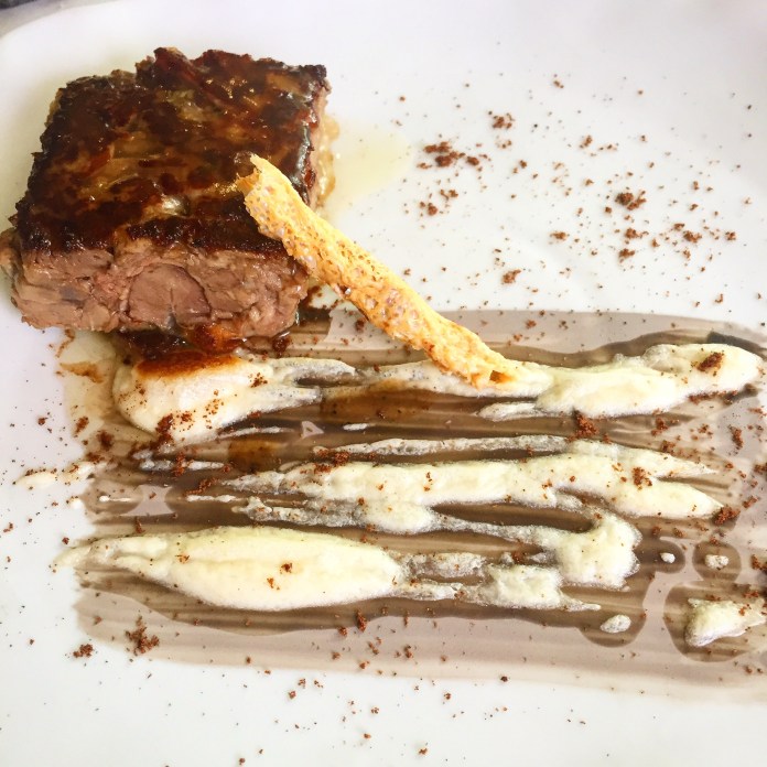 Excelente también el waygu que se sirve desmigado como rabo de toro y se enriquece con café (ya se ve que es el aderezo típico de estos cocineros), canela, pasas y salsa de carne hecha con el propio waygu. La gracia, el hallazgo que lo hace tan bueno y singular, es que todo es recuerdo y homenaje al mexicanísimo café de olla, una especie de café de puchero con canela y piloncillo.