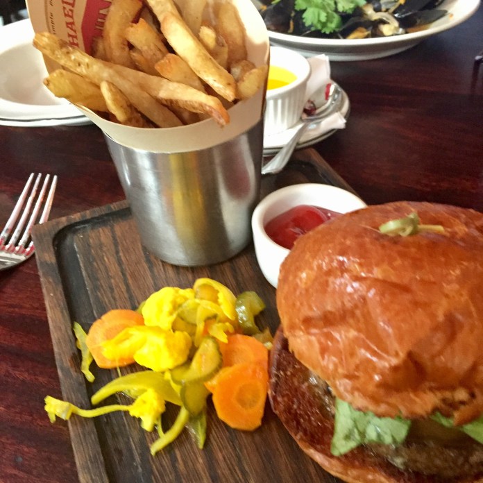 y rápidamente la mesa se cubre de entradas: una delicada ensalada Felicia que mezcla sin ningún embarazo la suavidad de los brotes de soja con la fuerza de la chistorra, primera concesión a los productos españoles
