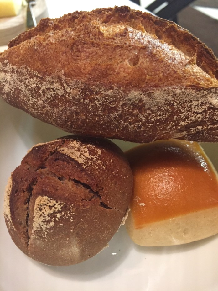 Llegan después tres deliciosos panes, de castaña, brioche y tradicional