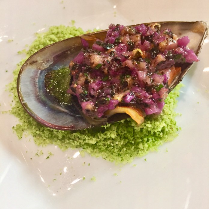 que se prolonga en un delicioso mejillón cubierto de tartar de algas y acompañado de un impresionante polvo de coliflor.