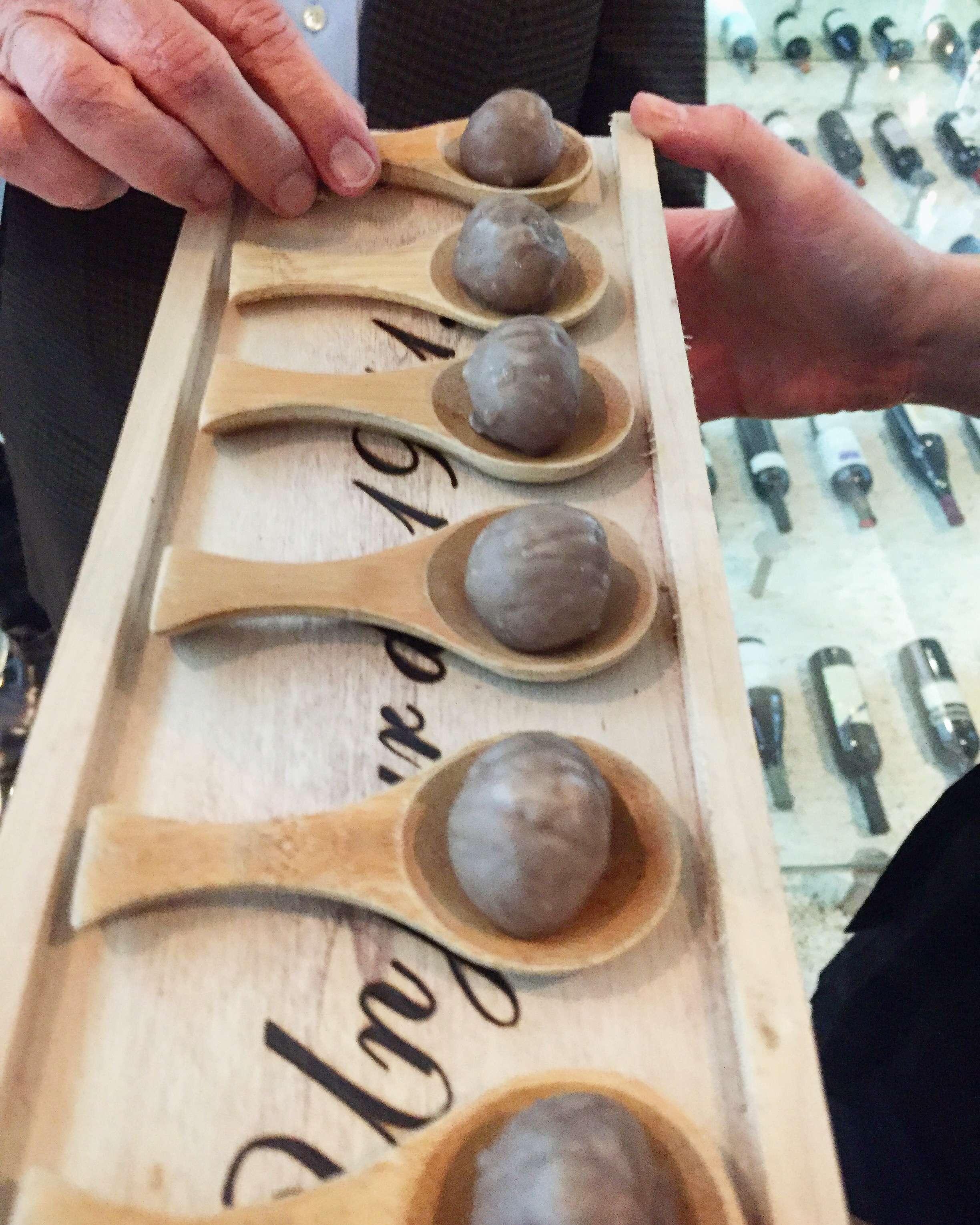 Mientras llega el postre hay una gran dulce espera: la fruta y el vino que recuerda al gran Ducasse y prepara para un gran chocolate que mezcla ruidosos crujires y aterciopeladas cremas en un todo chocolate supergoloso que llama lineal de chocolate con especias y helado de manteca de cacao.