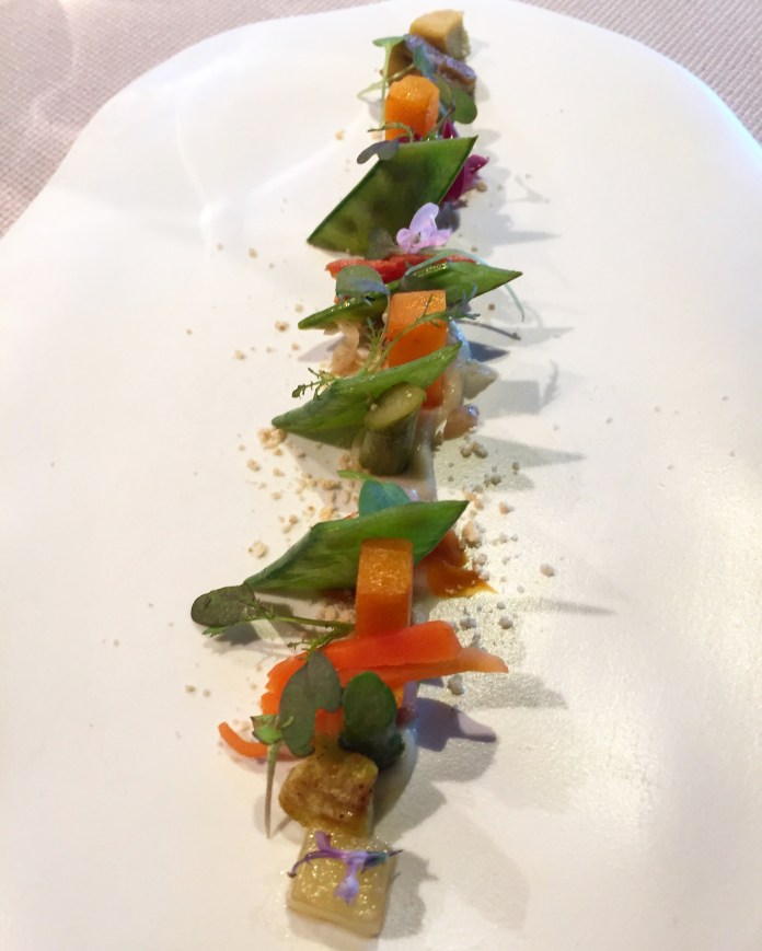 Sin embargo, he encontrado la hora, primero porque siento la necesidad y segundo porque en estos dos últimos años ha experimentado una tendencia a la simplificación muy elogiable. O casi. Ya les expliqué que Ramón Freixa, al igual que el gran Gagnaire era capaz de descomponer una receta haciendo un plato con cada uno de sus ingredientes, que más que en acompañamiento se convertían en auténticos platos coprotagonistas –a veces más- del supuestamente principal. La variedad de ingredientes de la cocina moderna – y no solo, piensen en un ave rellena o en una paella, por ejemplo- y la manera de disponerlos dotaba a esta cocina de enorme barroquismo. La solución, magnífica unas veces, resultaba algo forzada otras.