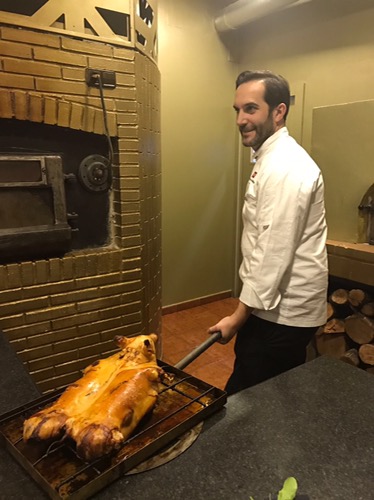 Los dados de corzo a la llama son otra de las grandes recetas de la casa. Como en el caso de la lubina, el respeto por la carne -tierna, jugosa, bien trabajada- es absoluto y el lucimineto viene en los contornos: lineal de boniato, granada, castañas y liliáceas que son básicamente esas leves cebollitas rellenas que me encantan.