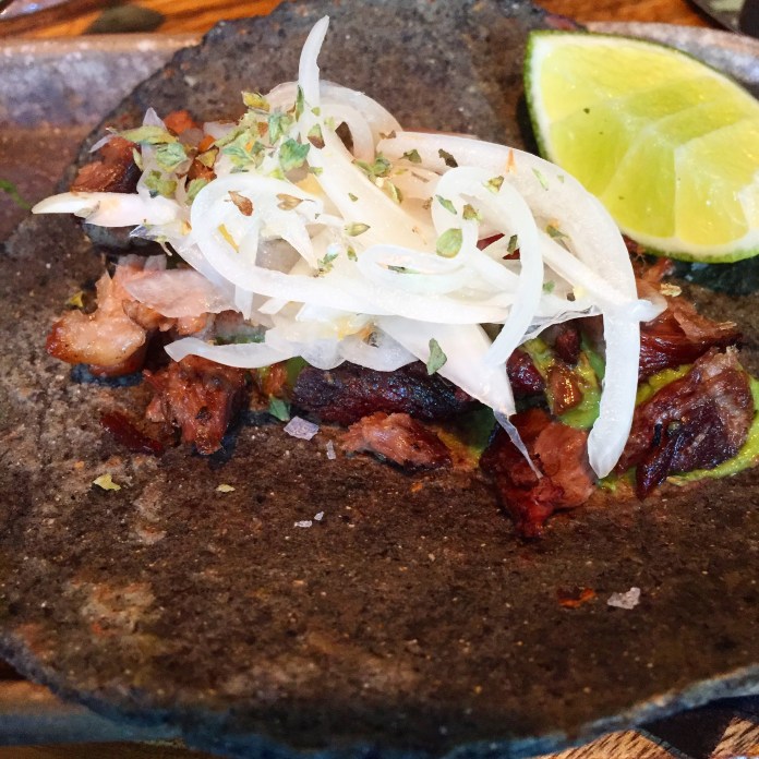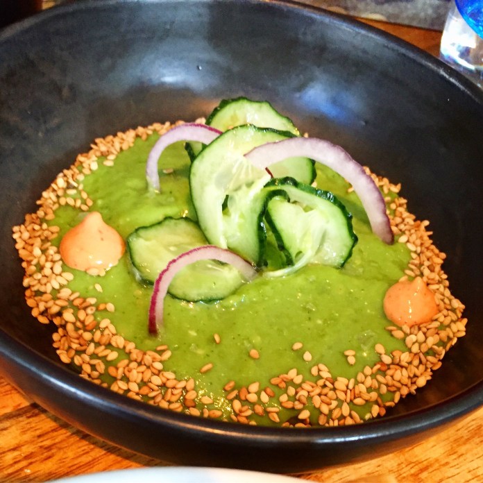 El oveo (así lo escriben como todo lo demás que les cuento) esconde una deliciosa crema de cebolla, huevas de trucha y mousse caliente de pimentón, una combinación deliciosa en la que resalta la potencia de esas huevas agrestes y chispeantes. Y hasta aquí los aperitivos. Sé que son mucho más que aperitivos pero así los llaman…