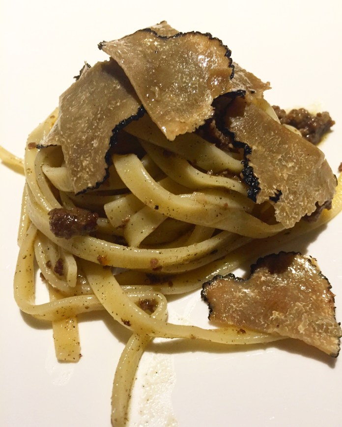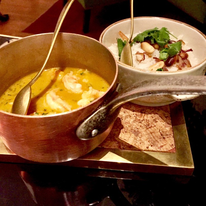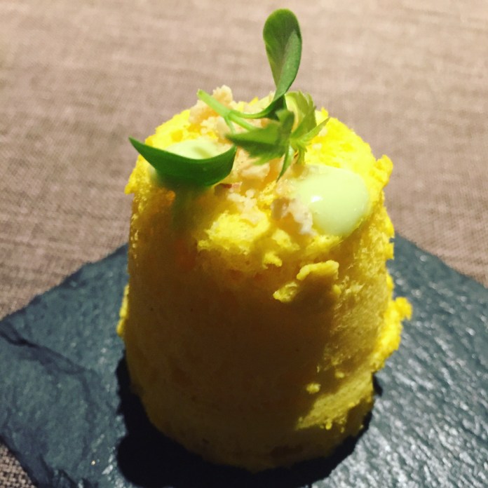 Cualquier plato que contenga los elegantes rojos ardientes del carabinero suele resultar opulento y este también lo era, pero no por la exageración sino por la calidad del marisco que se combina tan solo con una cremosa patata panadera y una yema de huevo. El camarero lo acaba en la mesa espachurrándo la cabeza sobre el resto para que no se pierda ni un jugo ni haya que liarse a chupetones, cosa que se agradece en grado sumo.