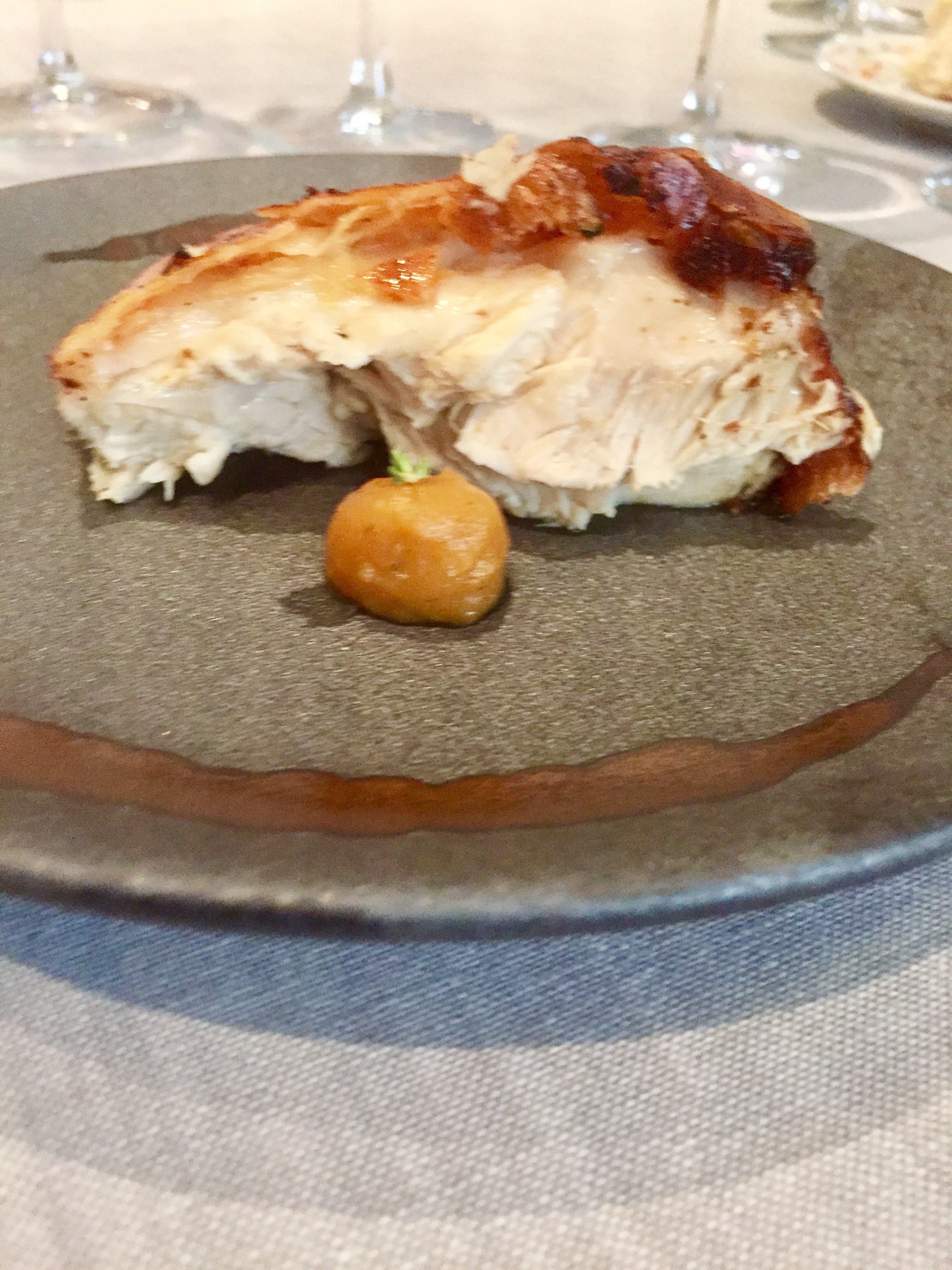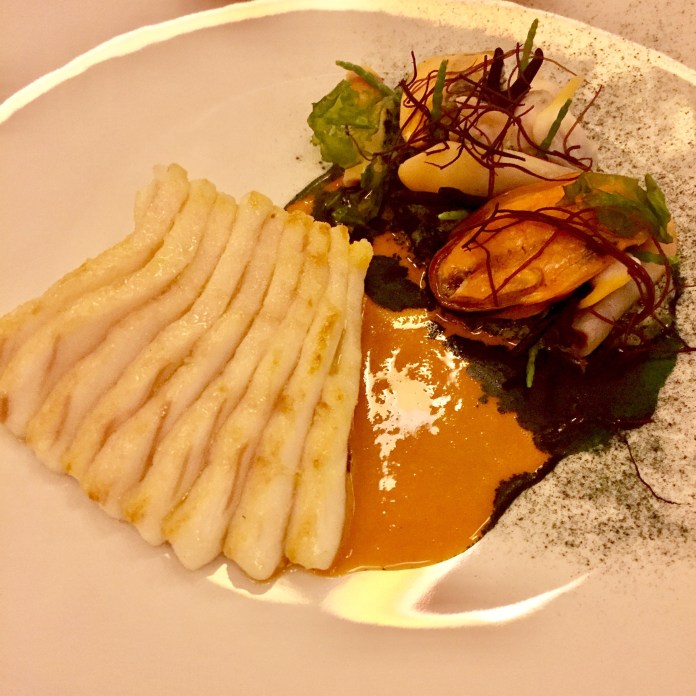 Me preocupó ver que los platos más modernos de la carta y de su menú corto eran de 2015, como si desde entonces no hubiera creado nada. Menos mal que los nuevos están condensados en el menú evolución, nombre perfecto para lo que yo quería. Debía ser excelente porque 165€ es una fortuna en Portugal y bastante caro en España donde el menú más caro que recuerdo en un dos estrellas es el de Dani García a 185, pero este está en la milla de oro marbellí, hogar de los magnates y además, al cambio es más barato, al cambio del bastante más alto PIB per cápita español, porque si hacemos la traslación exacta, este menú en España sería de 230€ o sea, una barbaridad.