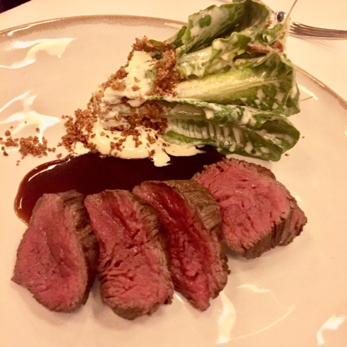 La riqueza de los mariscos contrasta con la reciedumbre y humildad del siguiente plato, quizá para recordarnos que no todo es goce en este valle de lagrimas. El repollo cocinado en un gran caldo de cocido y servido con unos pedacitos de papada braseda es una sabrosa preparación que la coloca muy por encima de su sencillez.