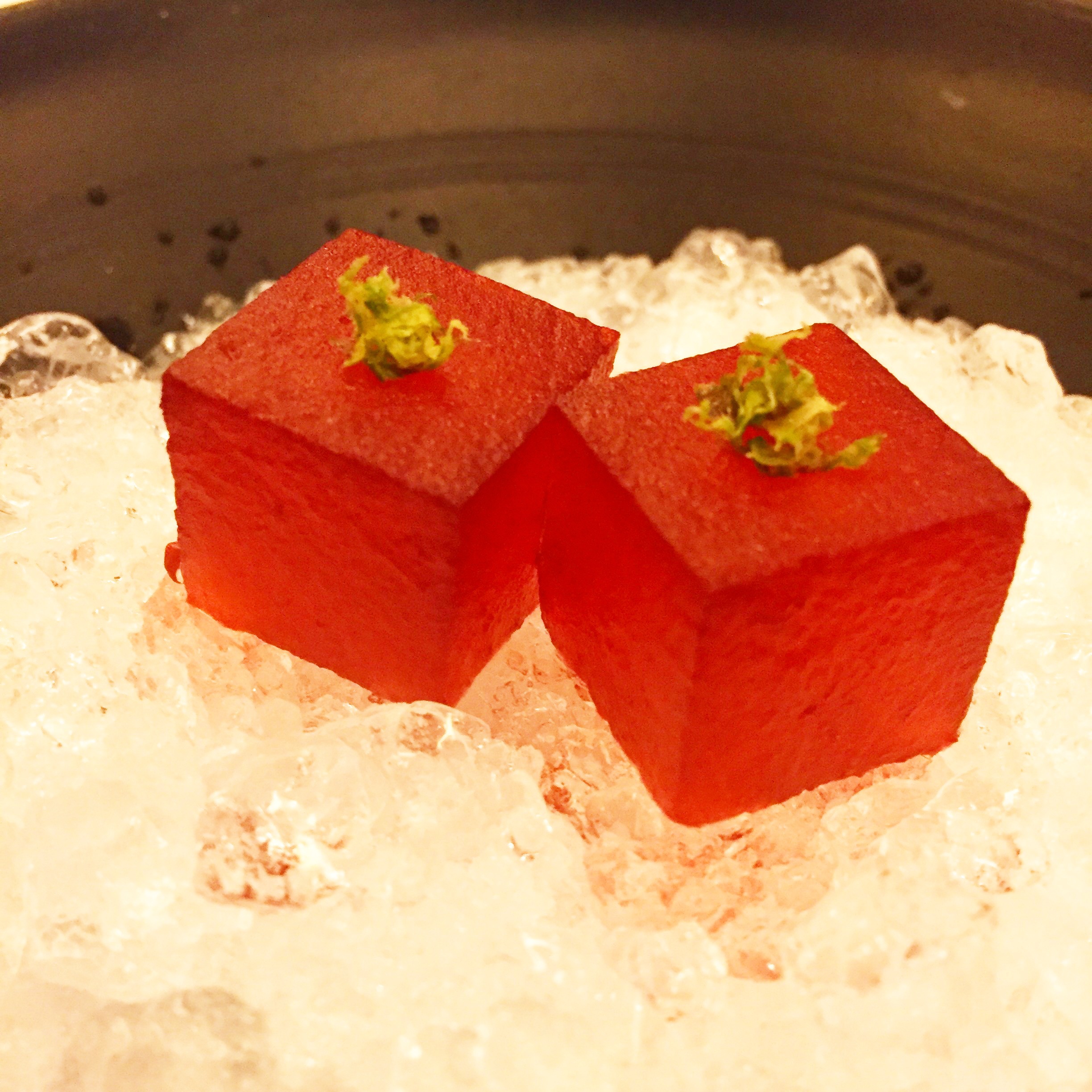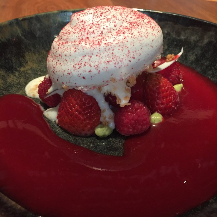 Muy acertadamente le siguen sabores refrescantes y sencillos. La técnica de blandos y crujientes le da modernidad y los sabores de fresa, lichi , rosa y yuzu placer y descanso al paladar. Un buen remate aunque aún queden