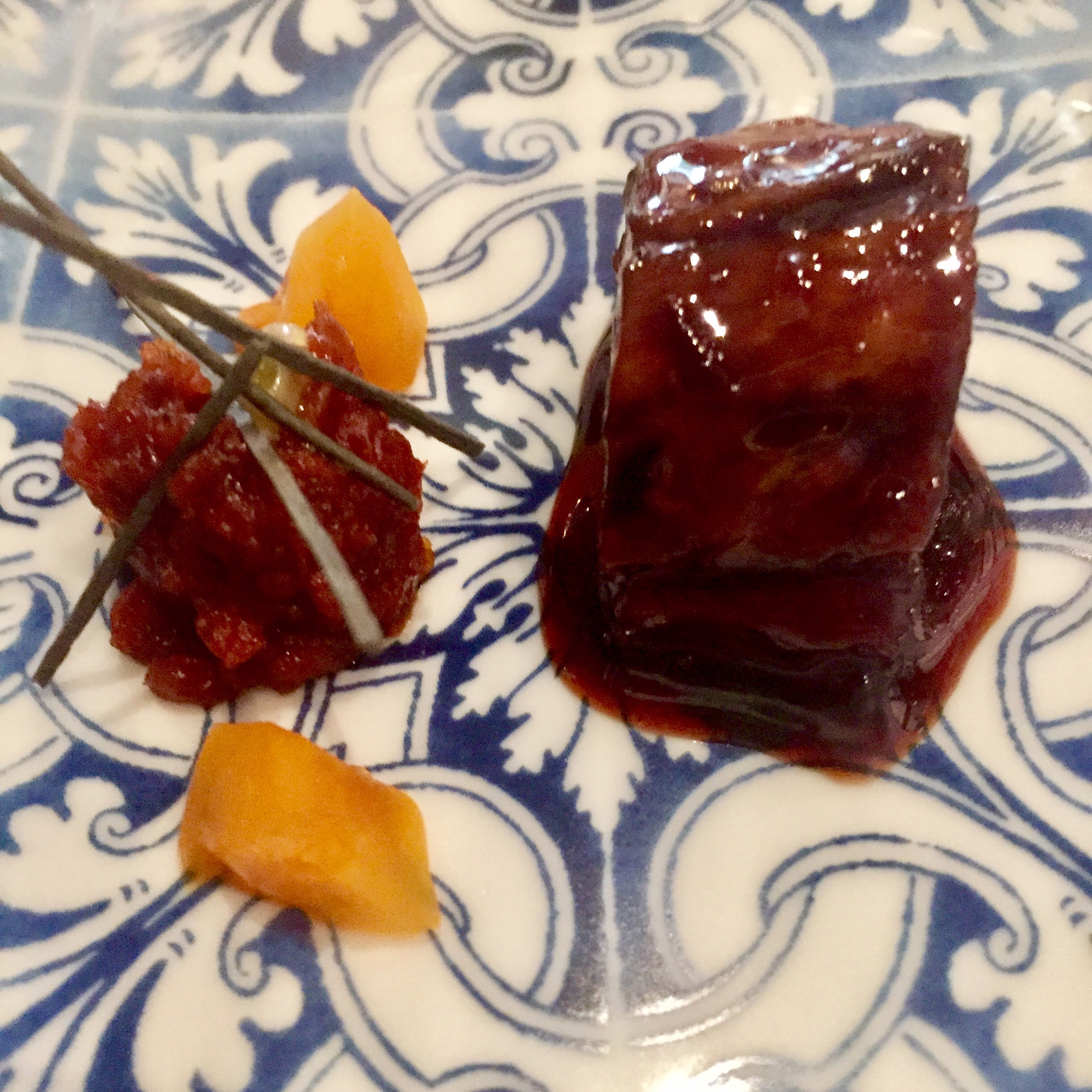 Sigo a Avillez desde hace años, desde antes incluso de su celebrado paso por El Bulli, pero varias veces me había quejado de su excesiva dependencia de Adriá y de la similitud de sus platos con los de algunos cocineros españoles, singularmente Joan Roca, Paco Roncero o Ramón Freixa, así que era momento de ver la evolución del chef, que además ha montado un emporio low cost de restaurantes menores en este mismo barrio, pero que mantiene este como buque insignia del grupo.