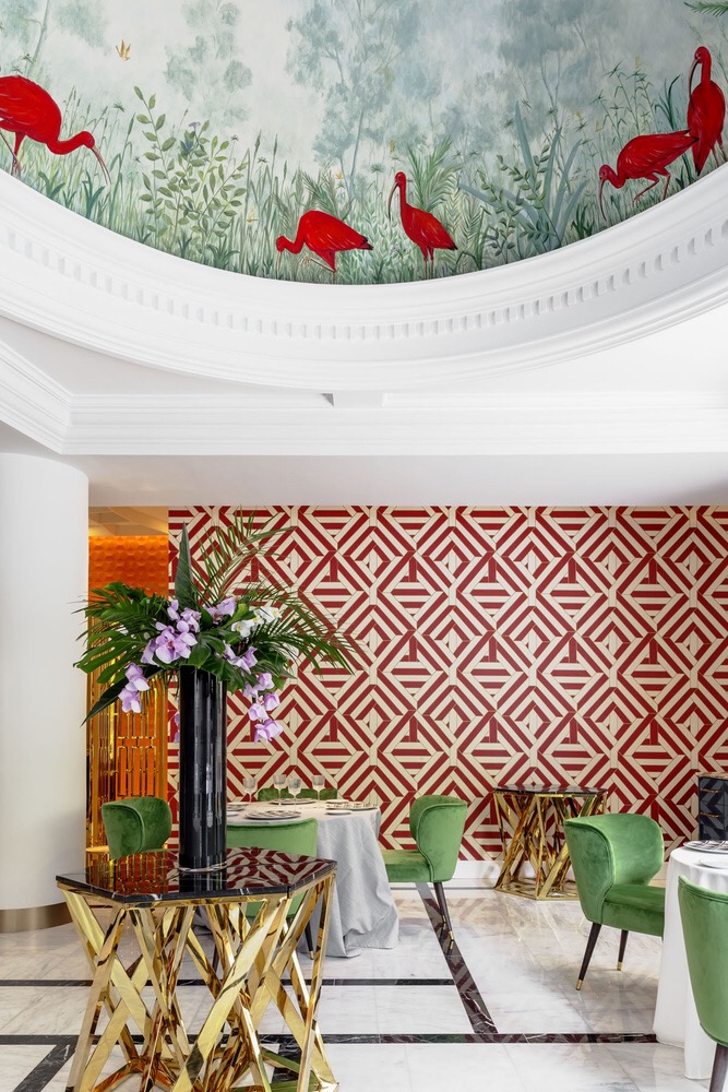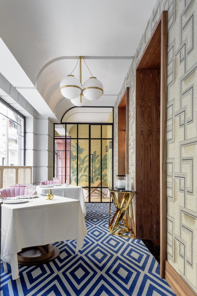 Por cierto, que ahora todo es nuevo en el restaurante. Han ampliado la cocina y se han deshecho -felizmente- de la angosta sala secundaria de mesas apiñadas, completamente impropia de un restaurante de esta categoría. La sala principal es amplia, luminosa y posee un encantador ventanal que da a la plaza y por el que de vez en cuando se ven discurrir los tranvías y a algunos paseantes. La pared frontera está decorada con un delicado mural de dalinianos platos derretidos de una impoluta cerámica blanca. Mesas grandes y convenientemente separadas completan el lugar.