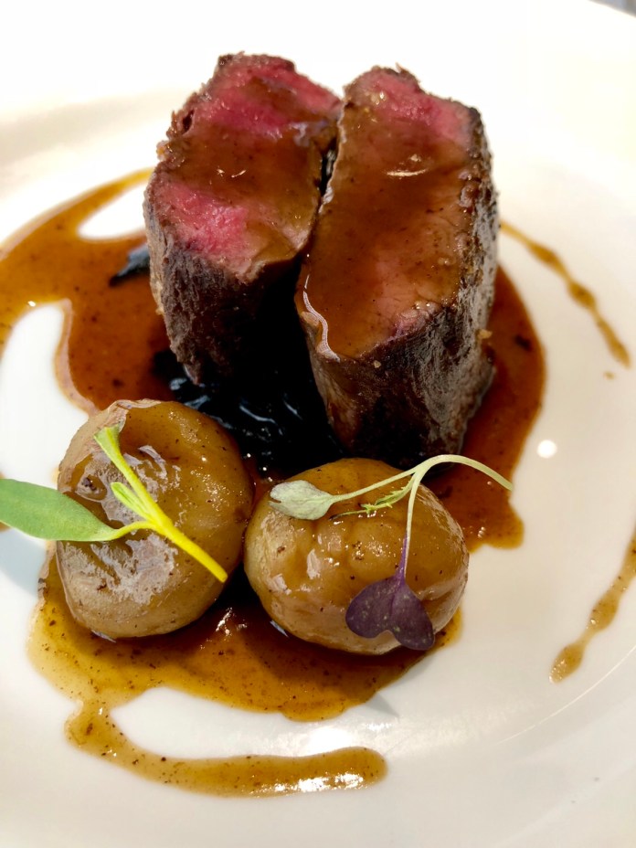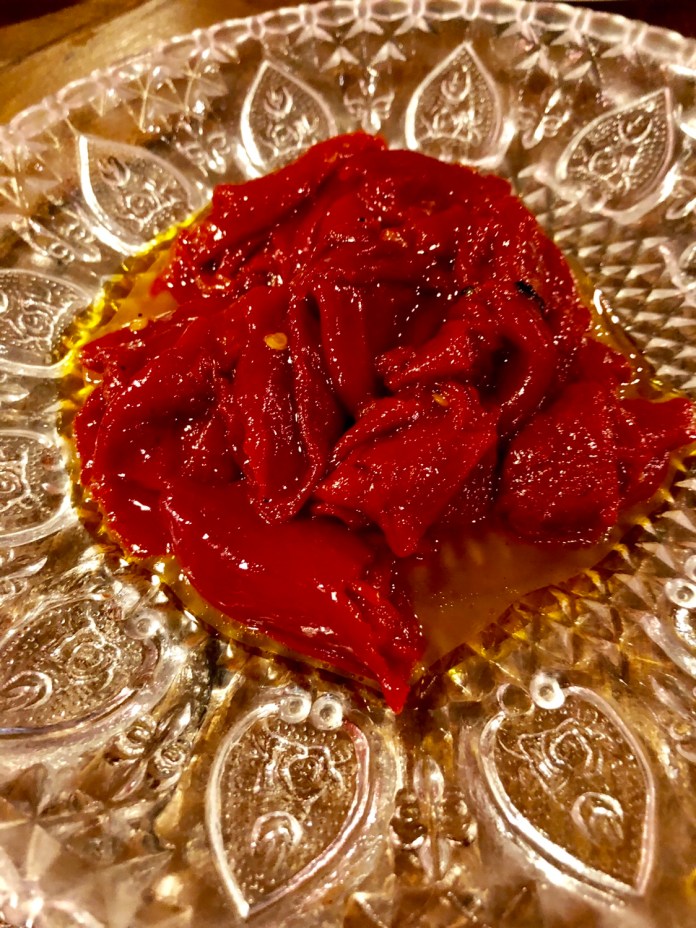 Se adorna con uma buenas y finas patatas perfectamente fritas y, como nos quedamos sin más entrantes, también con unos pimientos de Piquillo confitados que estaban simplemente maravillosos.