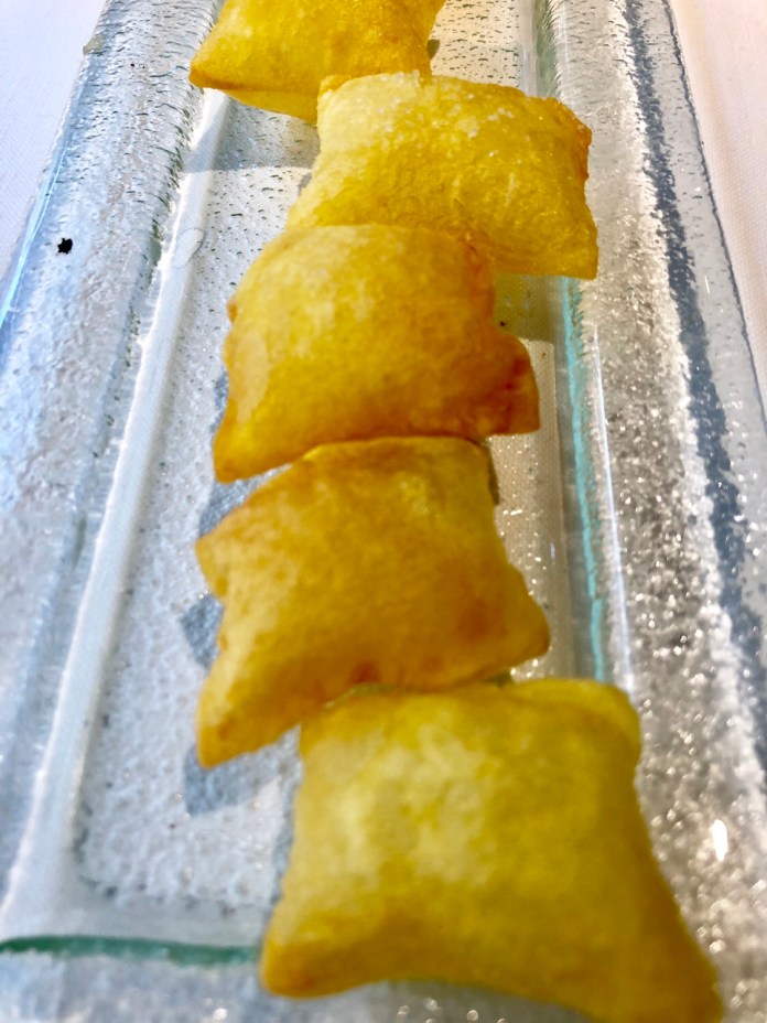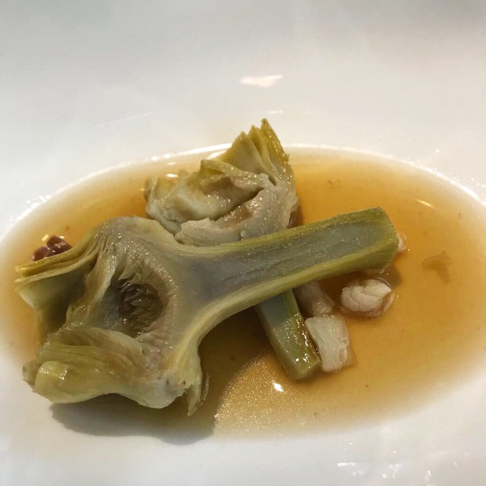 También son crujientes y delicadas las mollejas. Su suave sabor contrasta con unas judías verdes con mostaza que dan color y frescor. Y por si fuera poco, un refrescante toque de menta. Muy buenas.