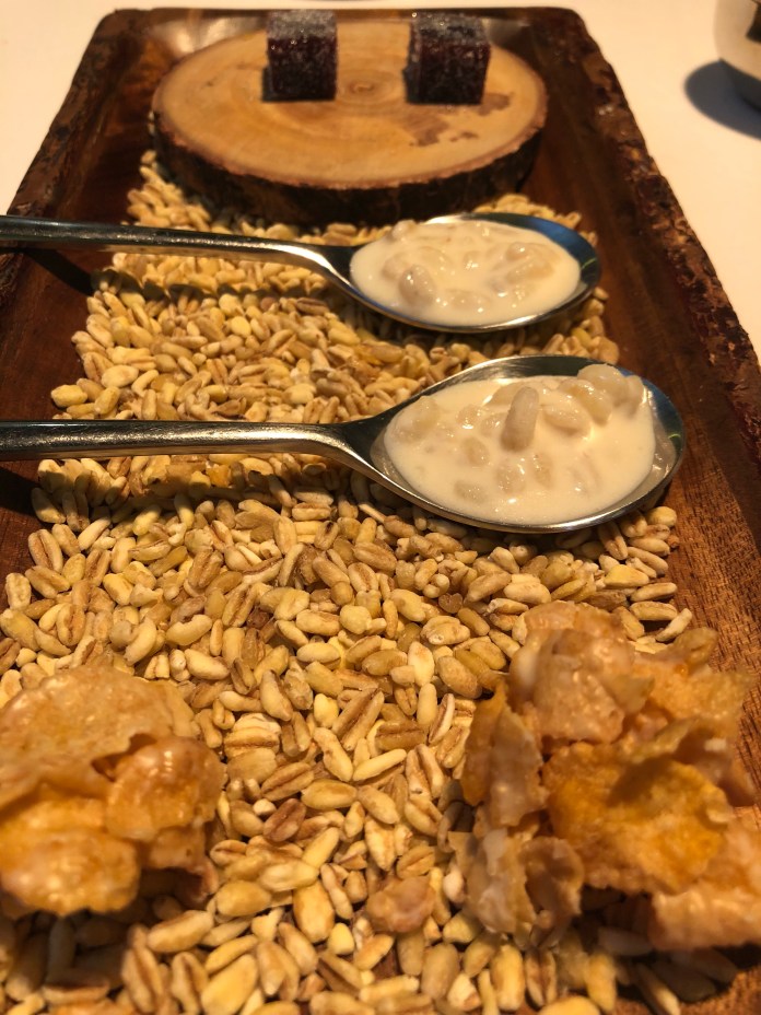 También se glasea una deliciosa terrina de un cordero, pequeño, deshuesado y de sutil sabor. Aquí los matices dulces se potencian con varias texturas de maíz y algo de pesto, que no le va mal pero que tampoco le aporta gran cosa.