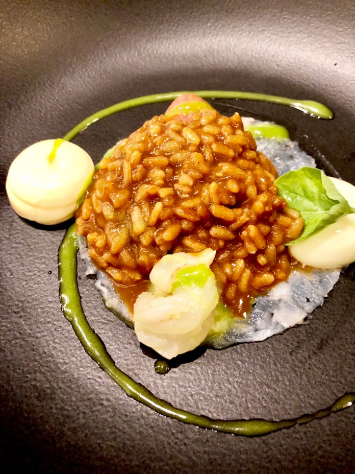 Evoca Nueva York toda la sala convertida en un falso Central Park, la famosa canción que todos cantamos y una bolsa con dos platos de diferente fortuna, entre los que destacan unas grandes vieiras en caldo de hongos. No es lo mejor.