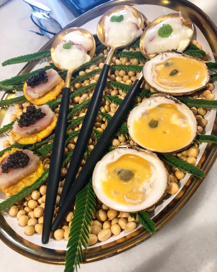 Recordarán que les he hablado varías veces de La Cabra, ya que es uno de mis favoritos en Madrid, pero hoy ven que les pongo nuevo entre paréntesis porque no lo es del todo. Todo empezó en este mismo local que se dividía en dos partes: una con menú degustación y la otra, llamada injustamente «tapería», con una gran carta de platos. Javier Aranda, el chef y propietario, abrió Gaytán, donde consiguió otra estrella, haciendo la machada de dejar La Cabra con sus dos modalidades, así que mantenía dos grandes restaurantes de menú y también una carta. Quizá demasiado. Por eso, ahora ha decidido dejar Gaytán para menú degustación y más altos vuelos y la Cabra solo para carta, por cierto, de enorme y bello formato, modelo años ochenta. También ha cambiado completante la decoración salvo el último y brillante añadido, la preciosa coctelería de Jean Porsche. Ahora el local es más elegante y bien resuelto, una enorme sala hipóstila con varios ambientes, dos grandes barras, refinada iluminación y excelentes maderas y mármoles.