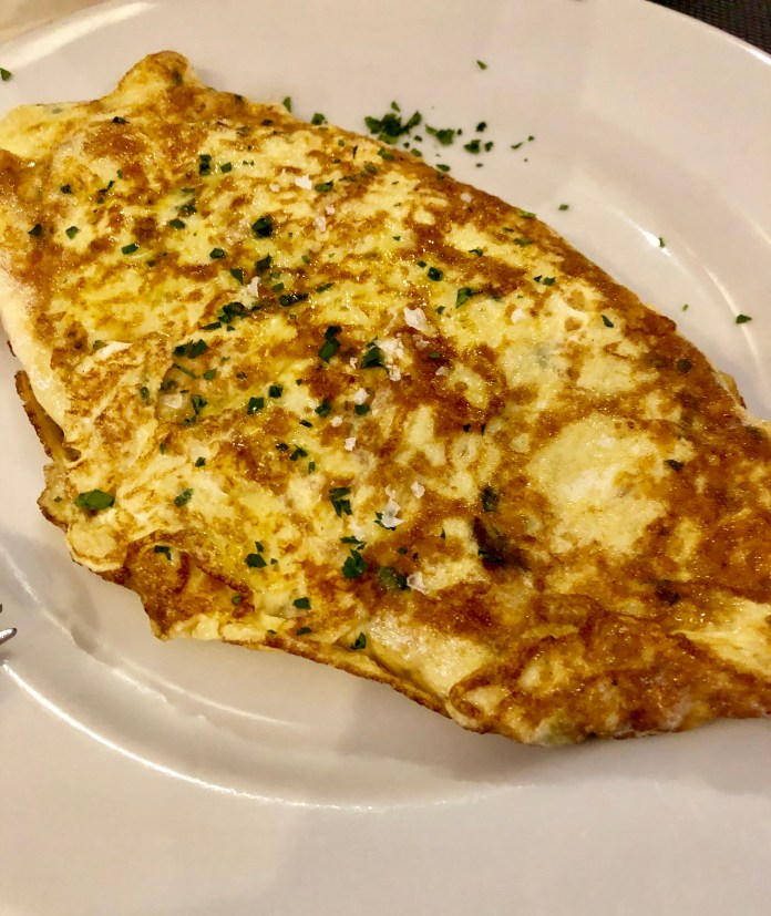 Muy jugosa la tortilla de bacalao. Más dorados en esta comida de ambiente tan poco brillante. Los toques salados del bacalao escondidos levemente por el dulzor de la cebolla estofada y un poco de pimiento aún más dulce.