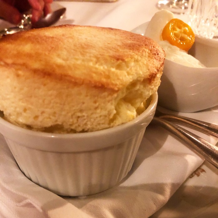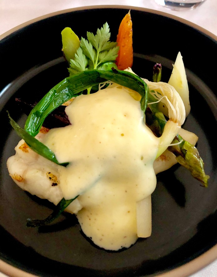 El San Martín con beurre blanc de capuchina tiene un nombre que no deja lugar a dudas. El pescado está perfecto y la meunier que lo acompaña es magnífica. También el acompañamiento: unos crujientes tirabeques y una buena crema de los mismos.
