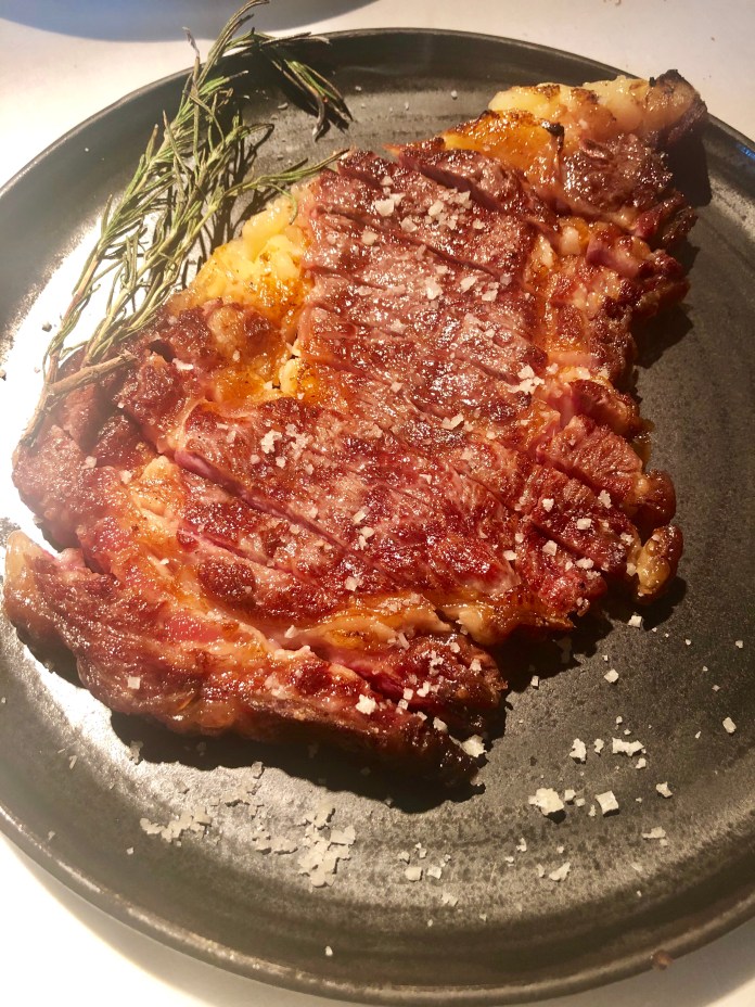 El barquillo de anguila (ahumada) y sisho es un cornete que rebaja la fuerza del pescado y mezcla dos texturas, blanda y crujiente, al igual que el steak tartare de novilla y crema fina de sésamo es una suerte de bocadillo crispy con un picante perfecto.