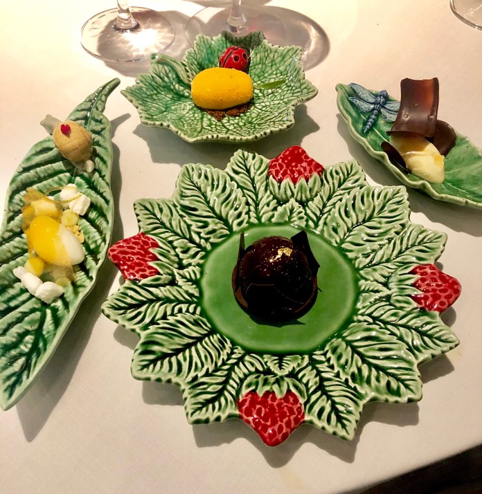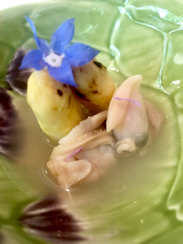 En cualquier caso, se preguntarán por qué les hablo ahora y la razón es bastante simple: después de casi dos años en constante evolución, Mario Sandoval ha alcanzado unas cotas de madurez asombrosas. Su nuevo menú de primavera es sublime en sus sabores vegetales, bellísimo en lo estético y asombrosamente brillante en el concepto. Hasta la elección la vajilla de Bordalo Pinheiro (cerámica popular portuguesa que ya es historia de la artesanía) es un acierto impresionante.
