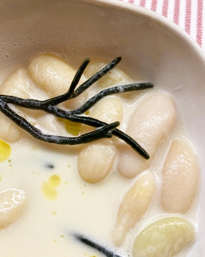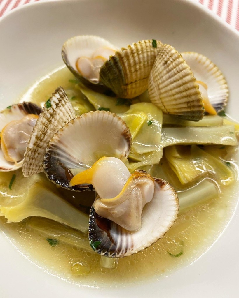 También muy ricas las alcachofas confitadas y a la brasa, tiernas, delicadas y con un sabor que va de lo untuoso del aceite al ahumado de la leña.
