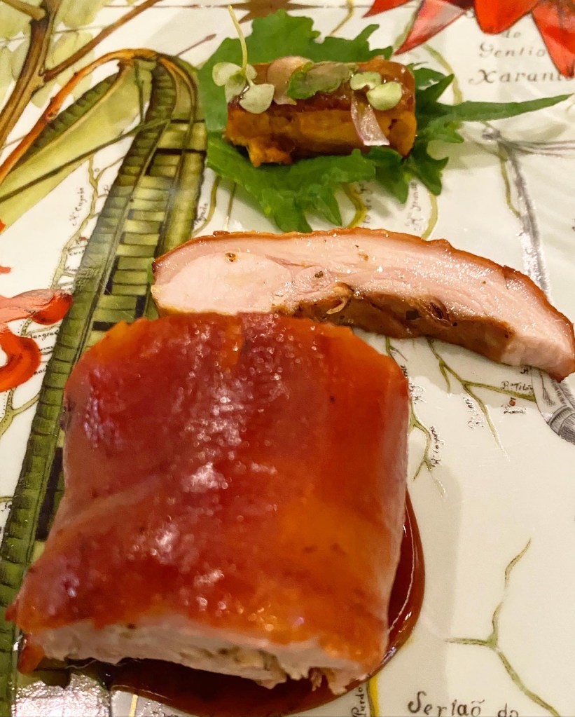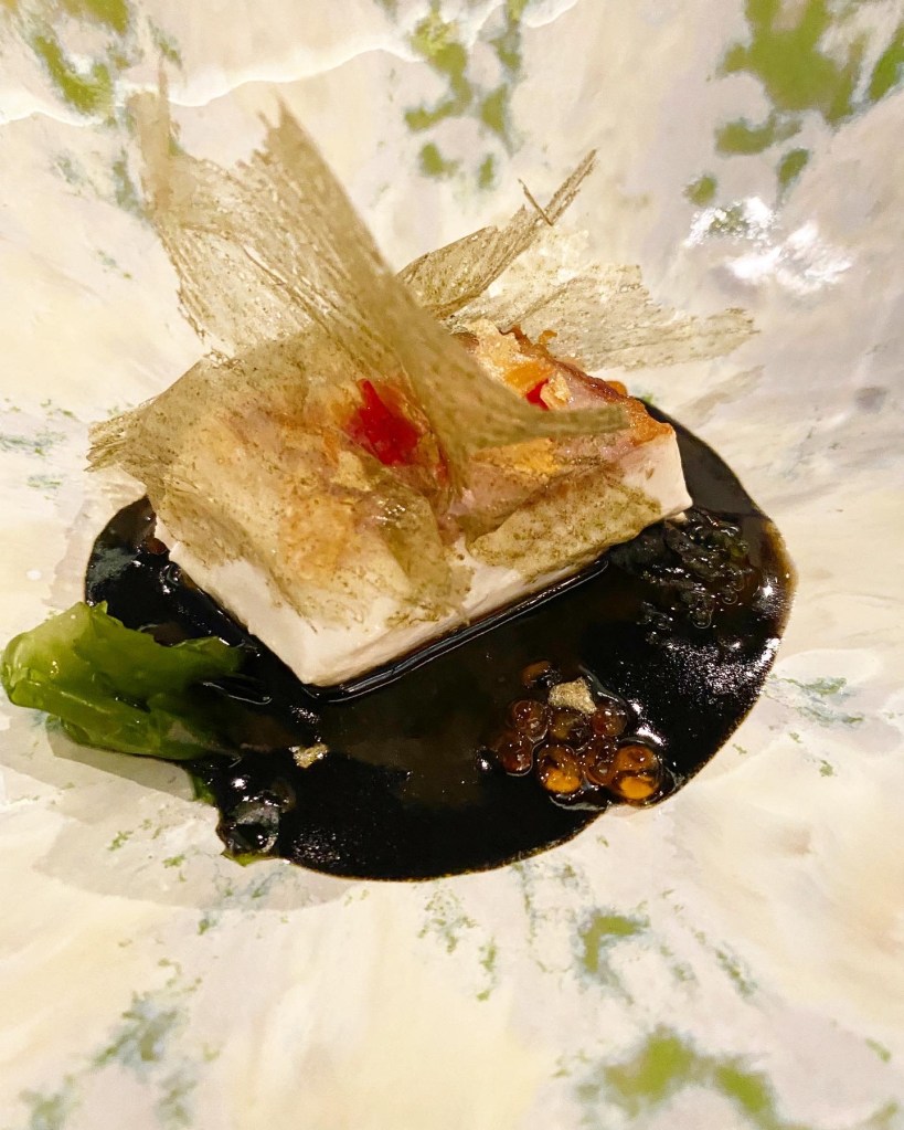 El cochinillo raya también la perfección después de varias generaciones de la familia asándolo, porque es así como todo empezó. Ahora lo sirve en tres prepraciones: enrollado en su piel crujiente (mucho, mucho) lacada, en chuleta confitada y las manitas, en un saam de hoja de shiso, tres maneras excelentes que combinan sabor y una cierta ligereza. Ya digo, mítico.