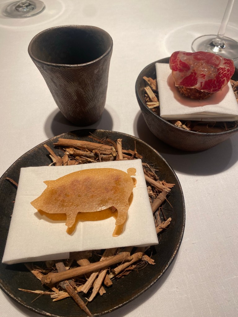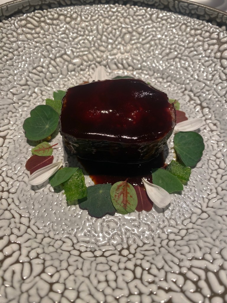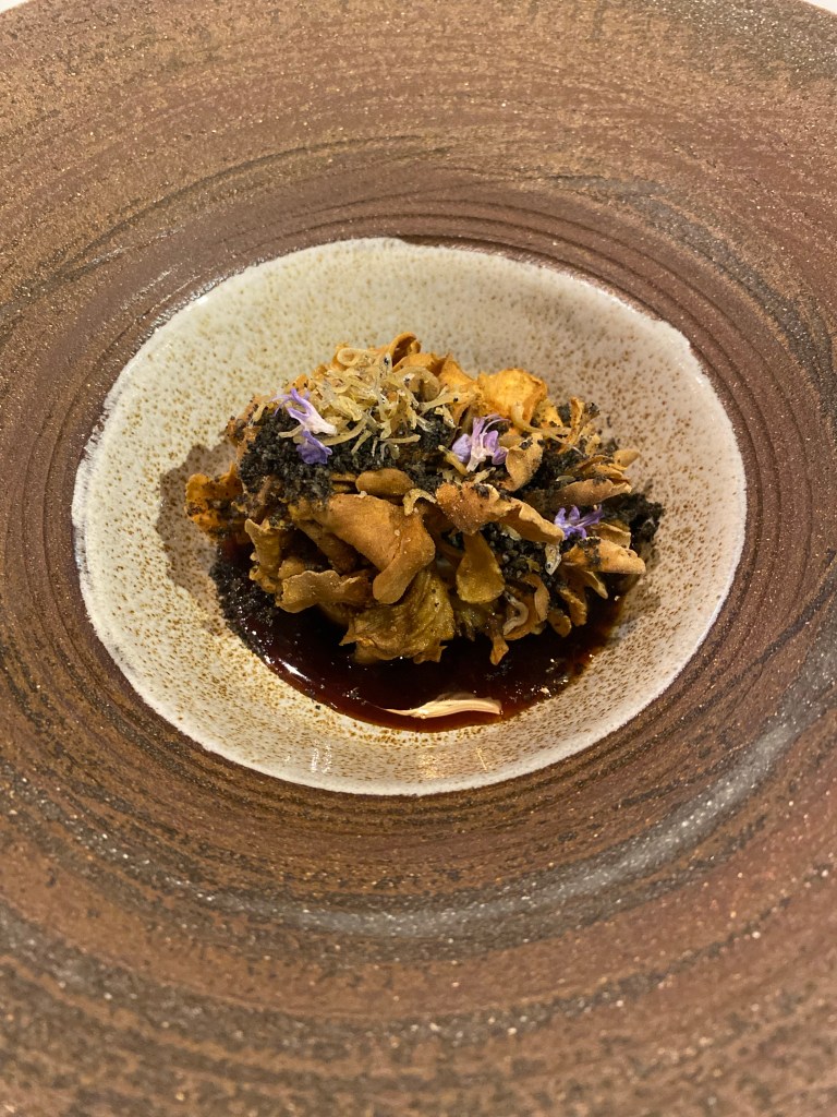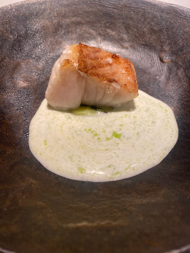 Tampoco se queda atrás una merluza de pincho curada, absolutamente única, con crema de coliflor ahumada y fioretto sobre la que rallan trufa negra de embriagador aroma. Solo eso, y hago un inciso: no sé qué me pasa este año y no sé si le ocurre a alguien más, pero el aroma es fascinante y el sabor casi inexistente.
