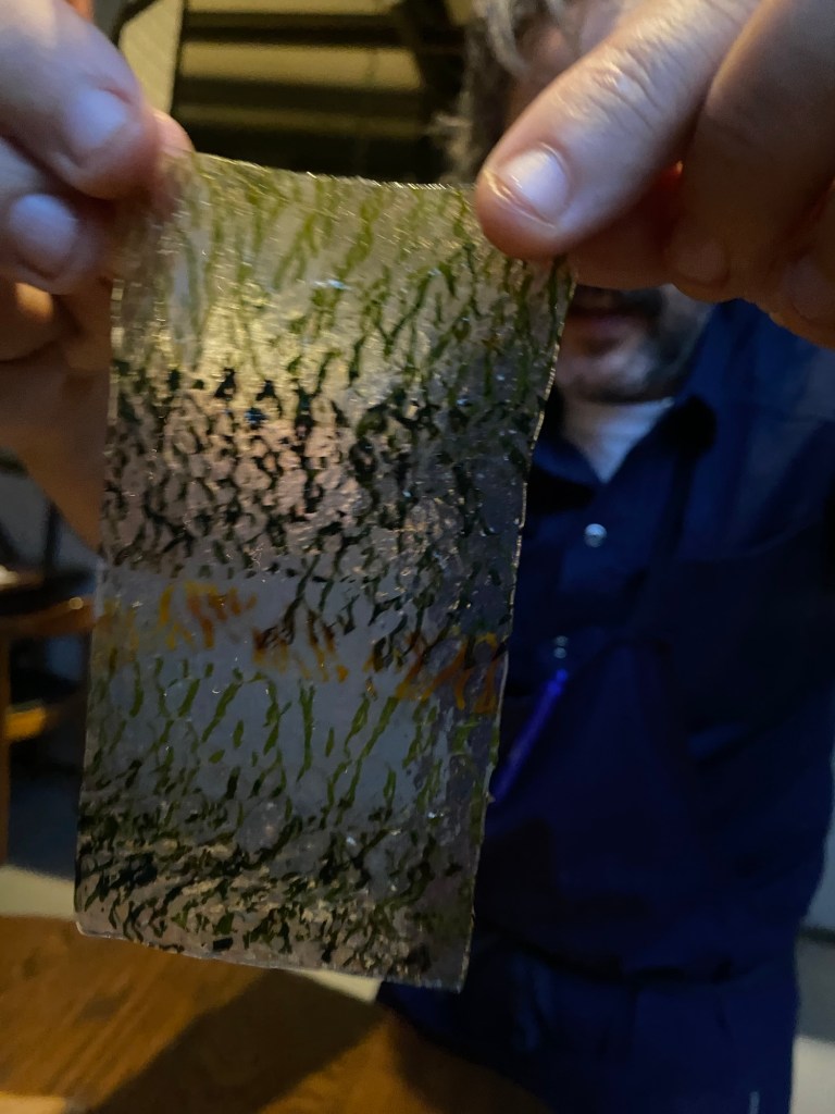 Están experimentado mucho con almidones y el del arroz es de los más importantes. Sabiendo el erróneo origen del sushi (chino, por cierto), entierra una lubina en pasta de arroz fermentado durante siete días, lo que conlleva un peculiar curado. Una loncha se sirve tal cual (y sabe a pescado con arroz), mientras que la otra se cubre con un poco de ito togarashi. Me ha gustado más porque soy adepto a los sabores fuertes y mejor si pican. La ventresca se sirve aparte y es una especie de guanciale con kombu.